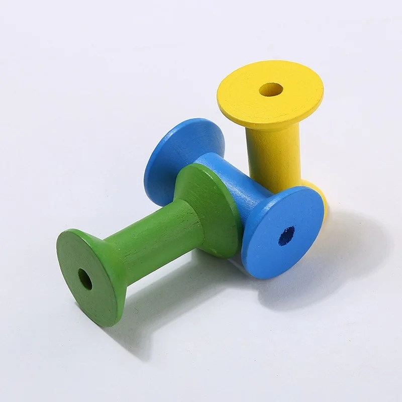 Цветные деревянные пустые катушки, пустые катушки с нитками, катушки с натуральной проволокой для плетения