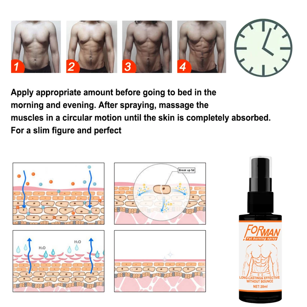 Мощный спрей для брюшных мышц, 30 мл, Антицеллюлитный крем для сжигания жира и потери веса, сильный крем для мужчин, женщин и мужчин для фитнеса и похудения