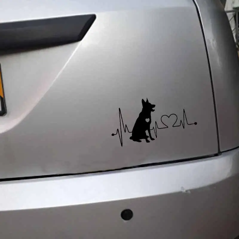 Немецкая овчарка наклейки из виниловой пленки сердцебиение мультфильм животное бампер автомобиля стикер черный/серебристый Аксессуары для автомобилей 18 см * 9,5 см