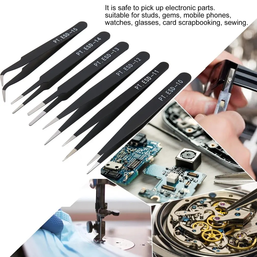 6 шт./набор, портативный размер, устойчивый к коррозии, антистатический прецизионный пинцет, набор для ремонта электронных инструментов, черный