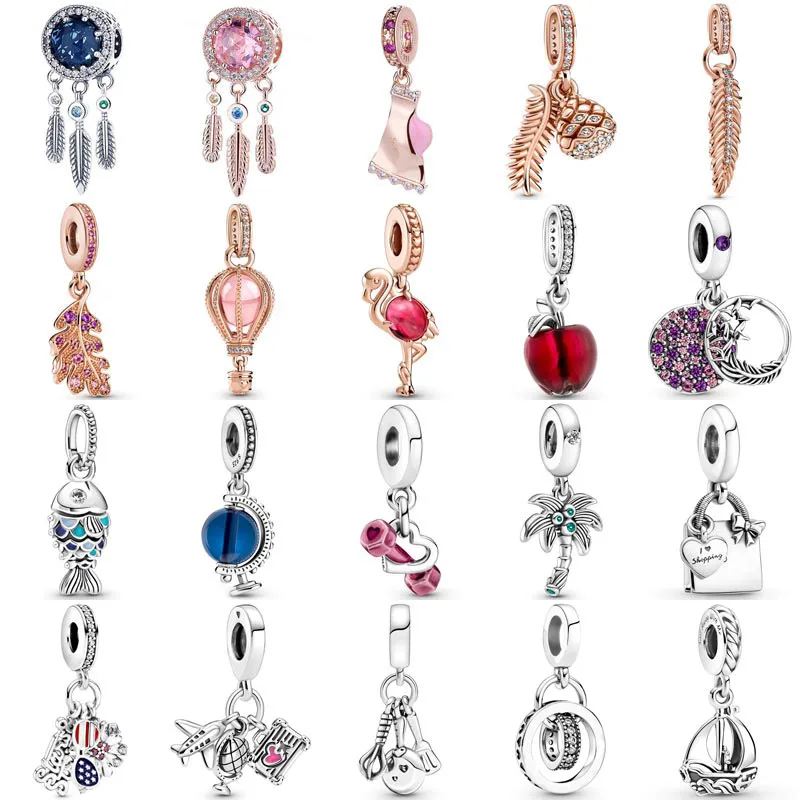 Подвеска из серебра 925 пробы в виде розового фламинго, яблока, рыбы