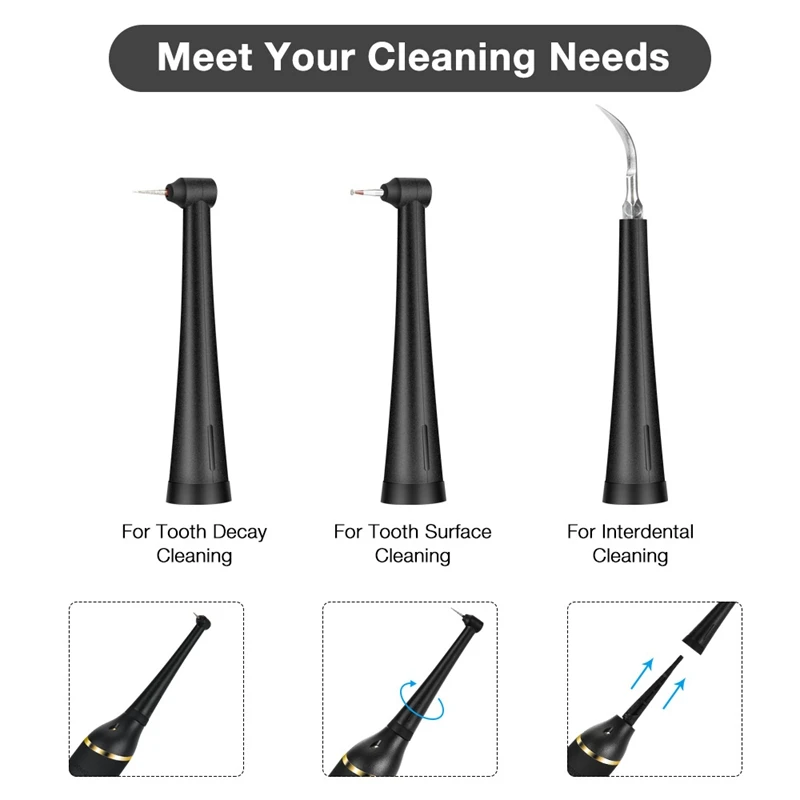 Упаковочный лист: Хост + игольчатая чистящая головка + Клининговая головка в форме крючка + плоская чистящая головка + зеркало для рта + Пинцет + зарядный кабель постоянного тока + Руководство пользователя