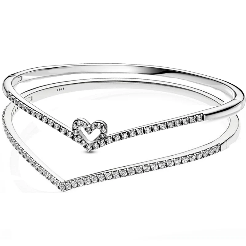 Оригинальный блестящий браслет S925 в форме сердца, блестящий брасл...