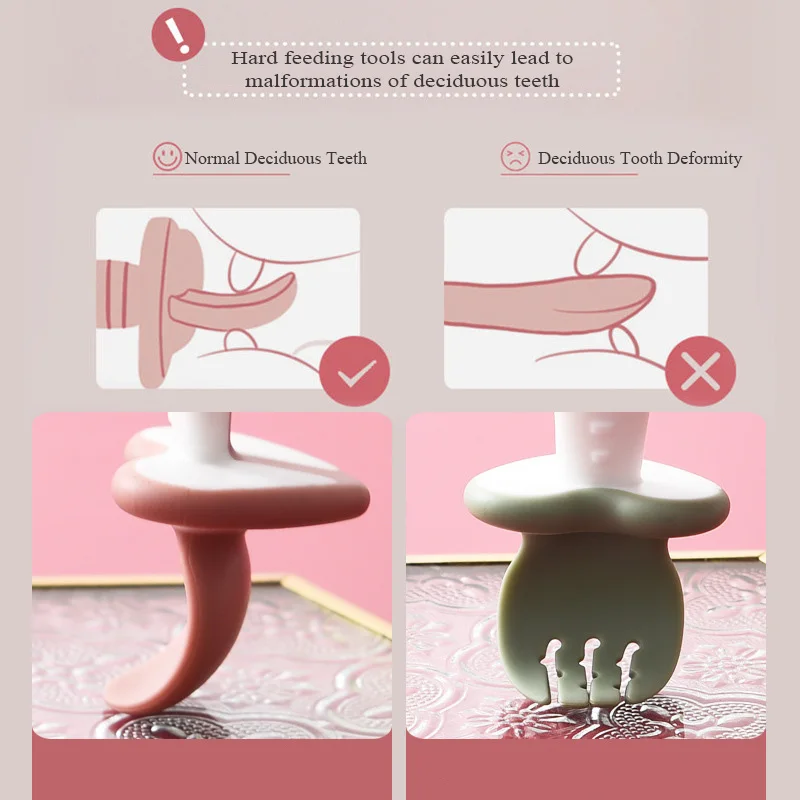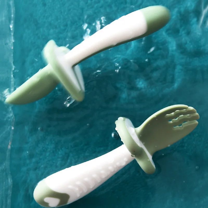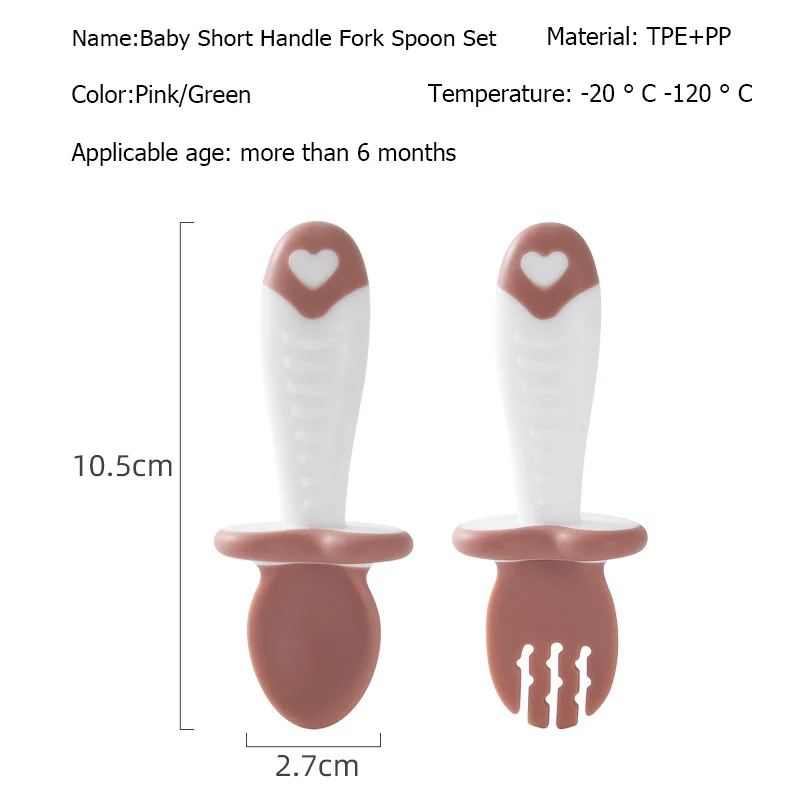 Детская тренировочная ложка и вилка с мягкой головкой и короткой ручкой, детский инструмент для кормления ребенка, пищевая посуда без BPA, детская посуда