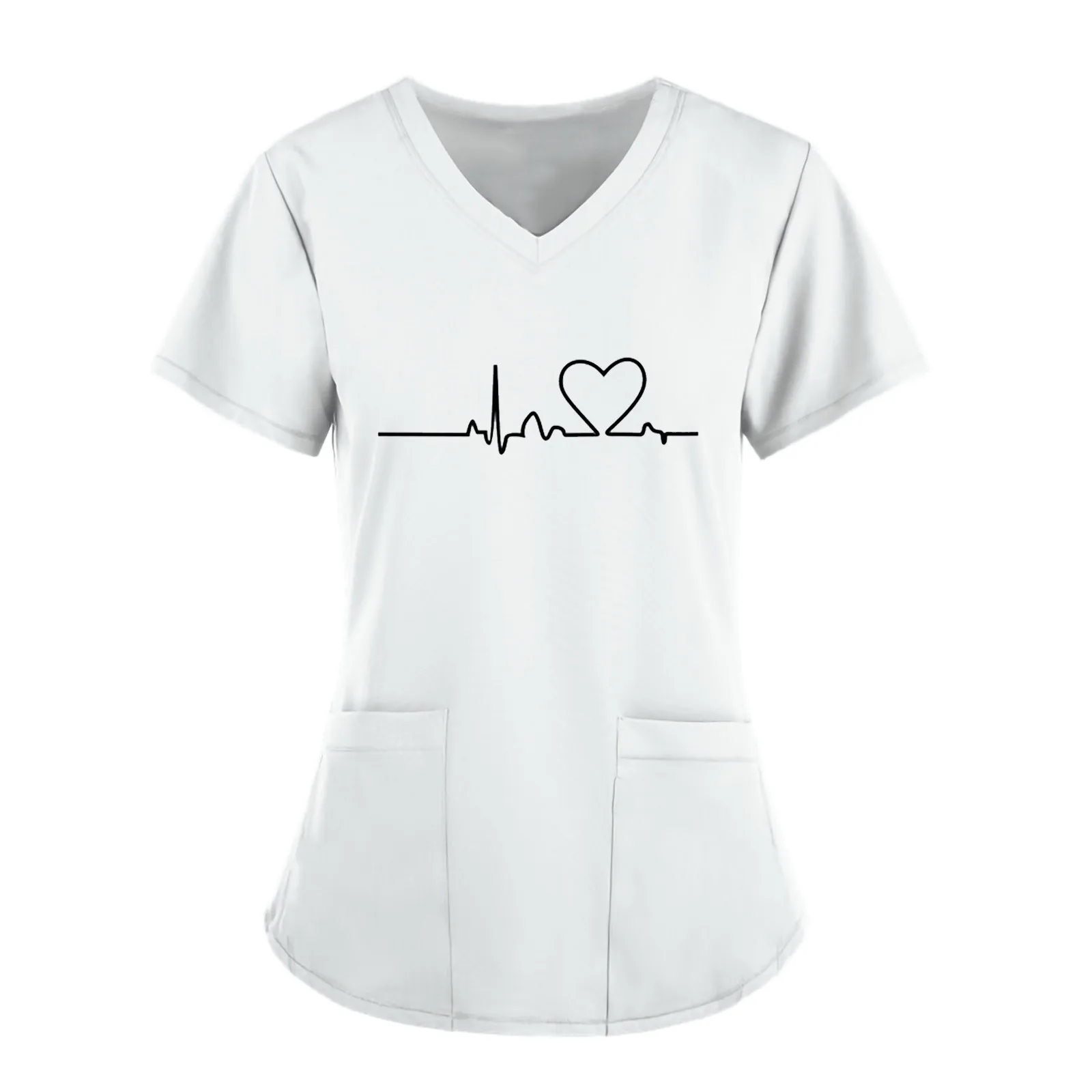 Женская медсестринская Униформа с принтом в виде сердца и ЭКГ, топы с коротким рукавом и V-образным вырезом, Рабочая Униформа, блузка с карманами, медицинская униформа