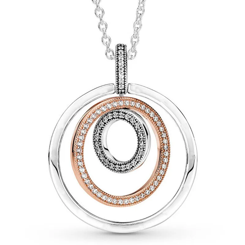 Оригинальный кулон в виде двух колец с хрустальным ожерельем из сте...