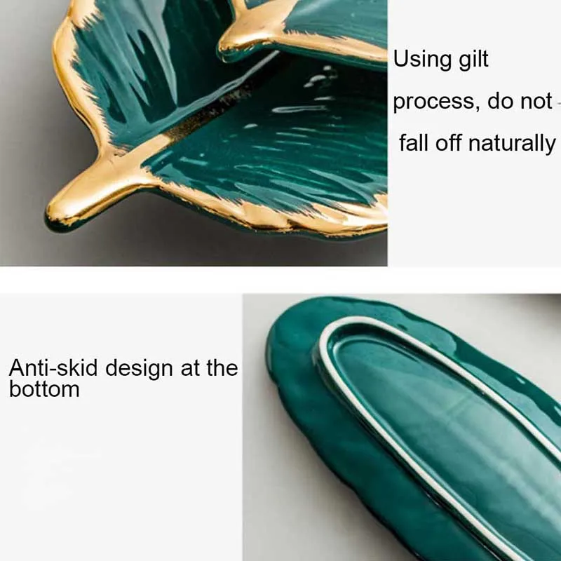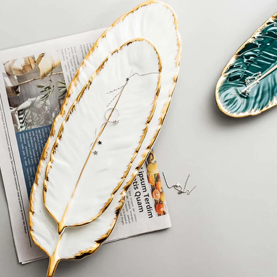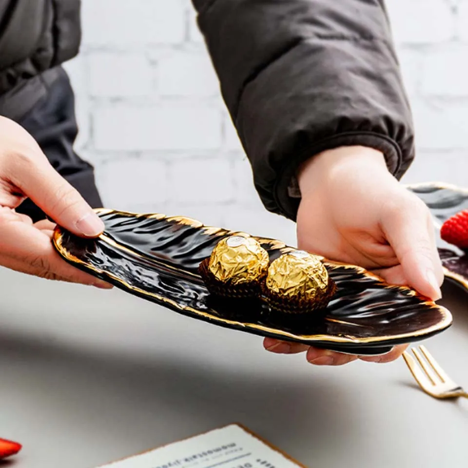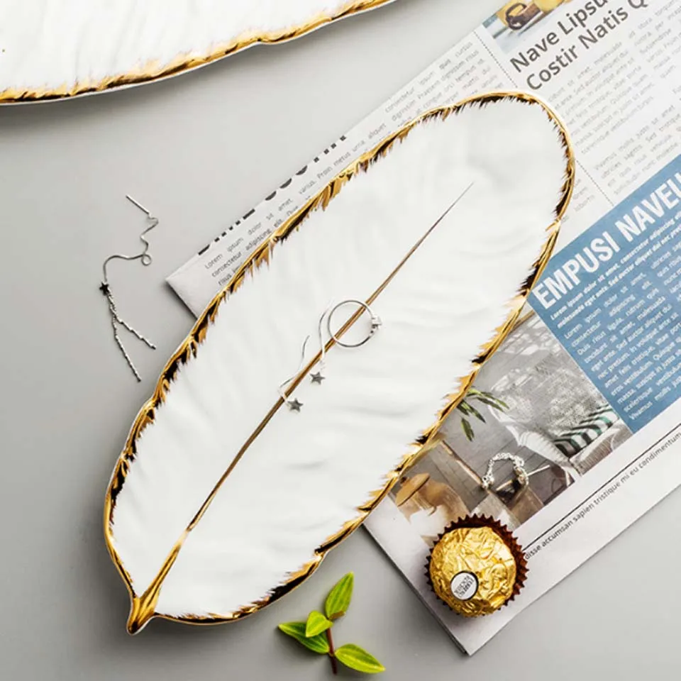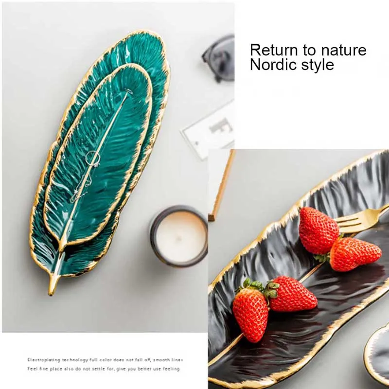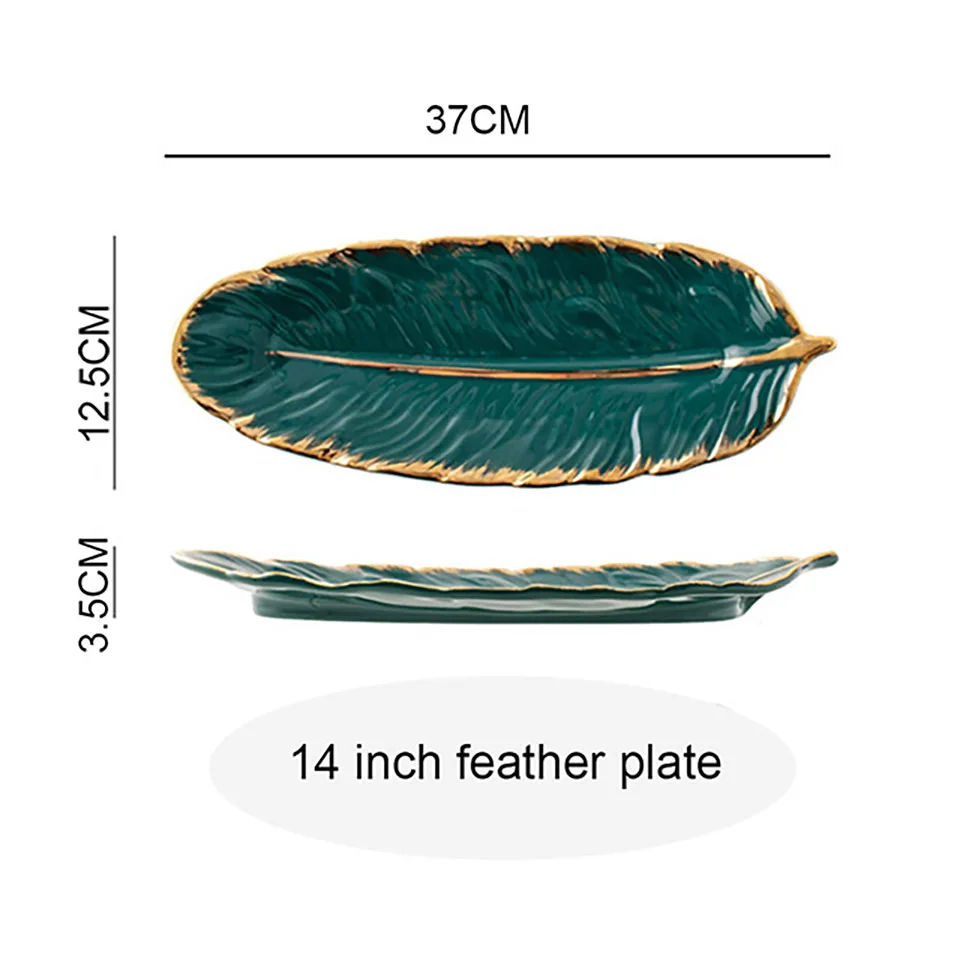 Керамическая тарелка YMEEI в форме листа, золотистая фарфоровая тарелка для десерта, тарелка, столовая посуда, лоток для хранения с перьями суши-посуда