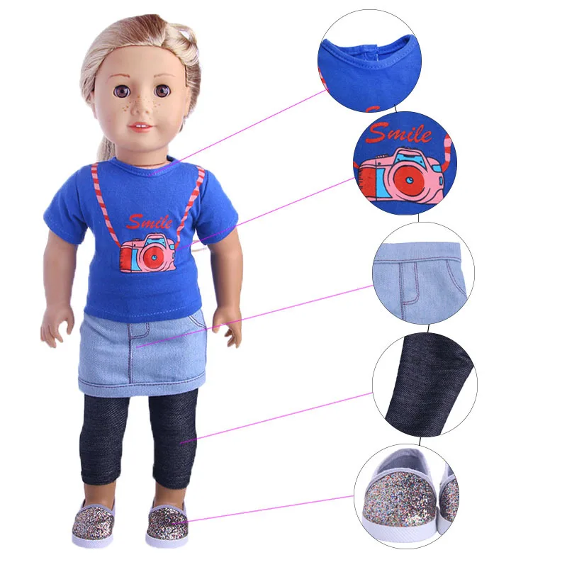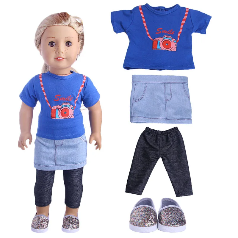 Костюм камеры топ + юбка + леггинсы костюмы подходит для 18 дюймовых американских и 43 см новорожденных кукол одежда аксессуары Nenuco игрушки