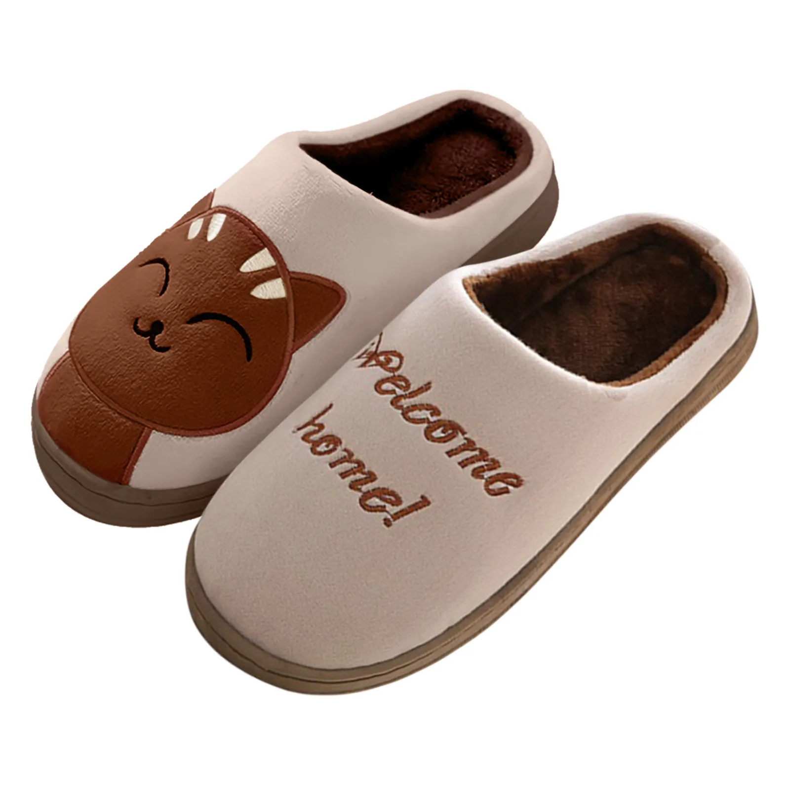 Симпатичные домашние тапочки с принтом кошек и животных, Короткие Плюшевые Теплые мягкие хлопковые женские тапочки, закрытая обувь для пола, большие размеры 45