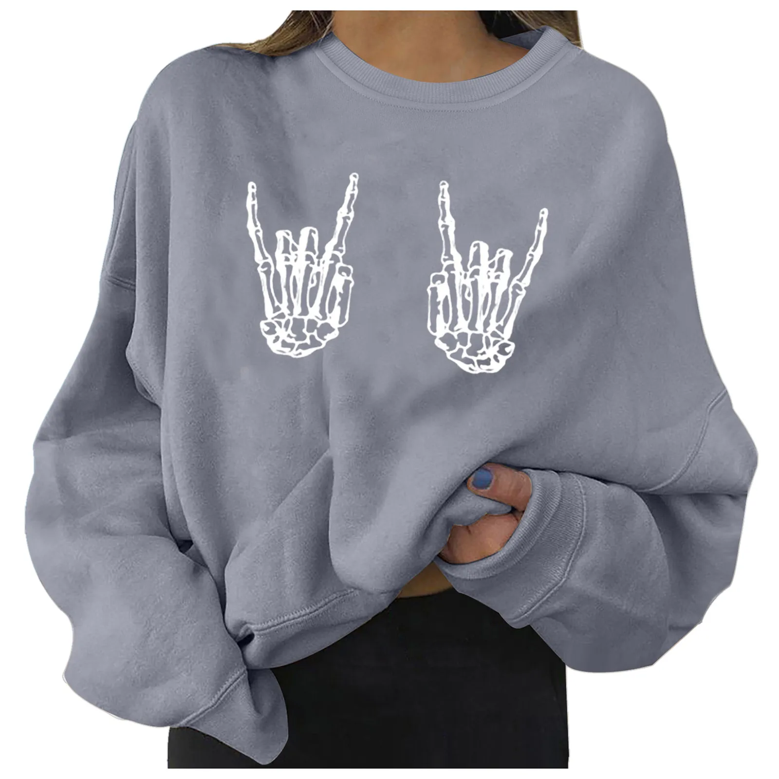 Свитшот женский с длинным рукавом, повседневный модный Свободный худи с принтом костей на Хэллоуин, R5