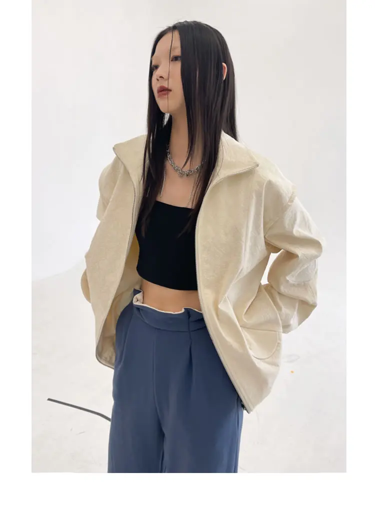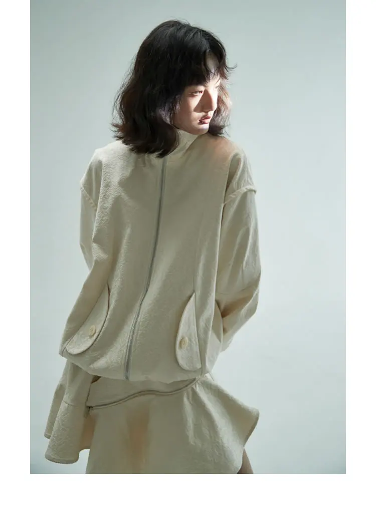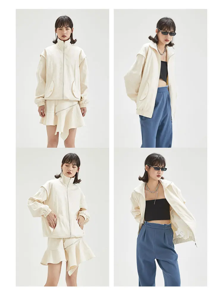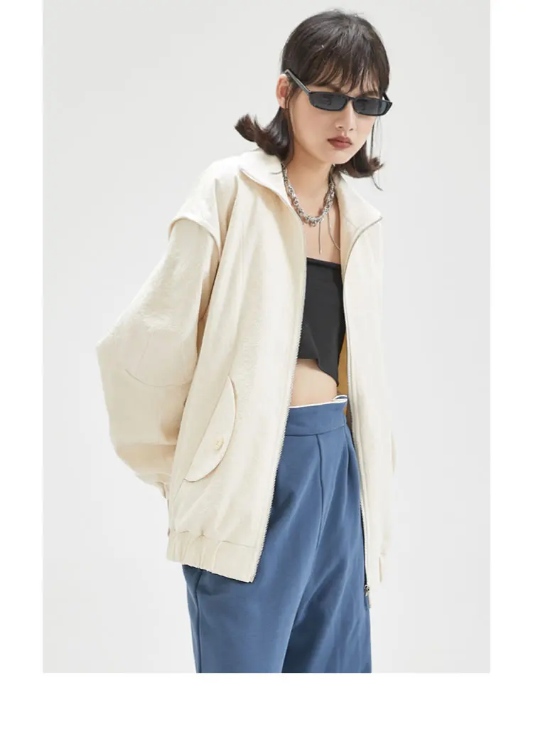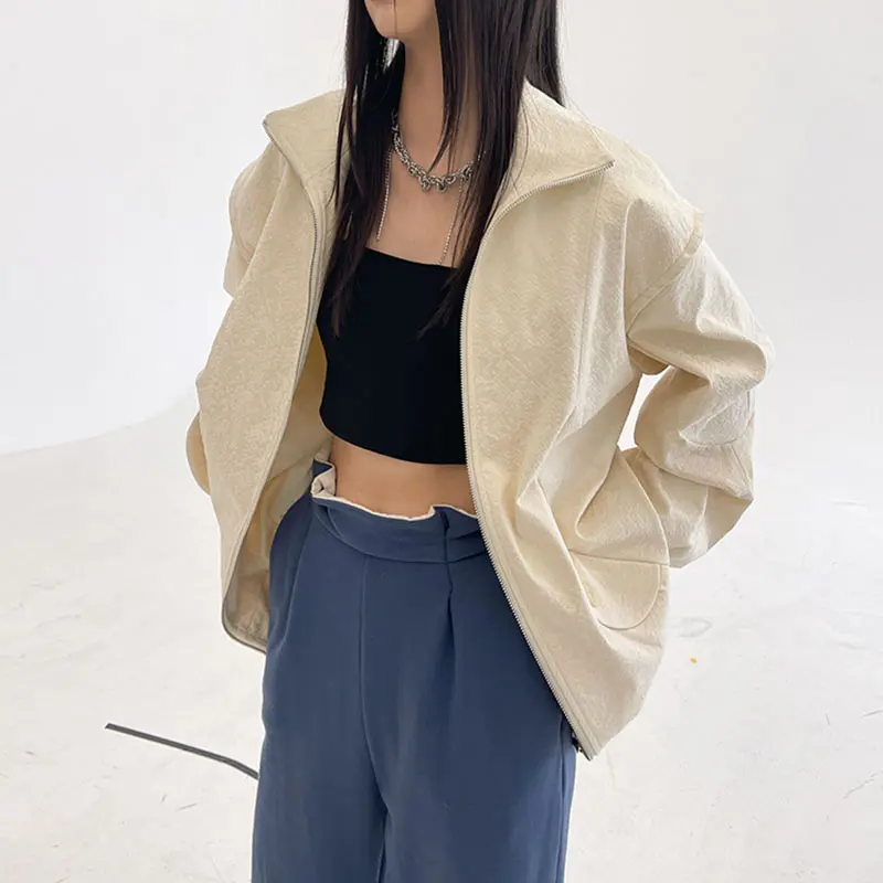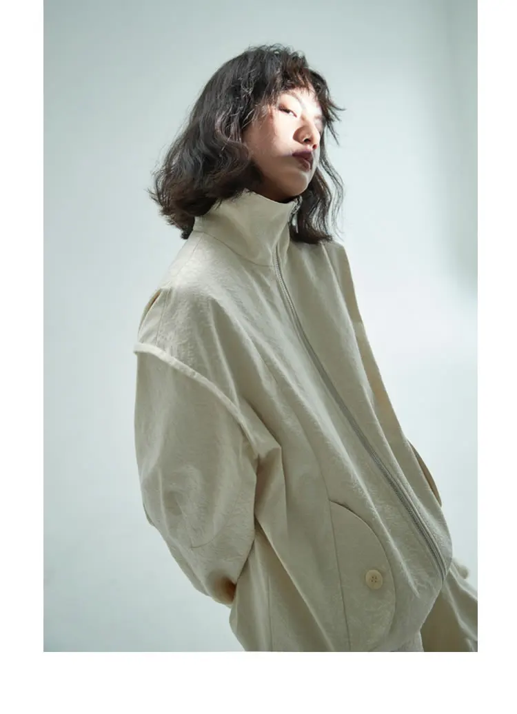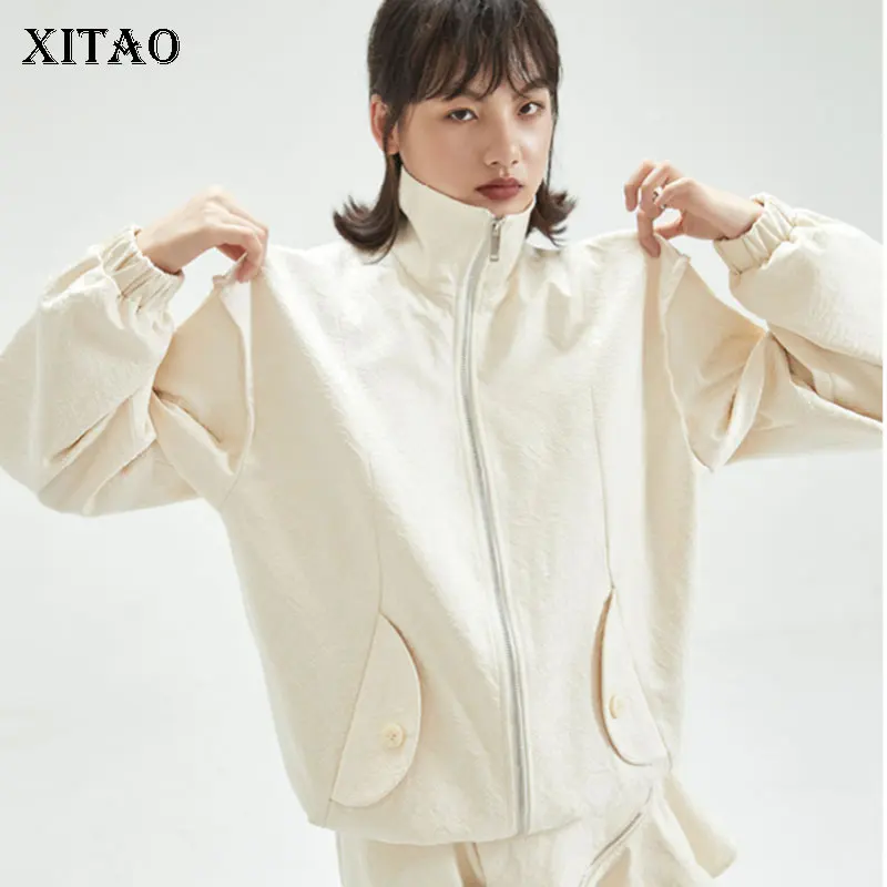 Женская куртка с карманами XITAO, однотонная, повседневная, стильная, осенняя, свободная, с длинными рукавами, GWJ0044, 2021