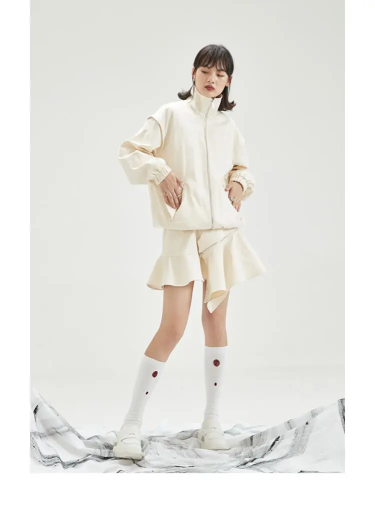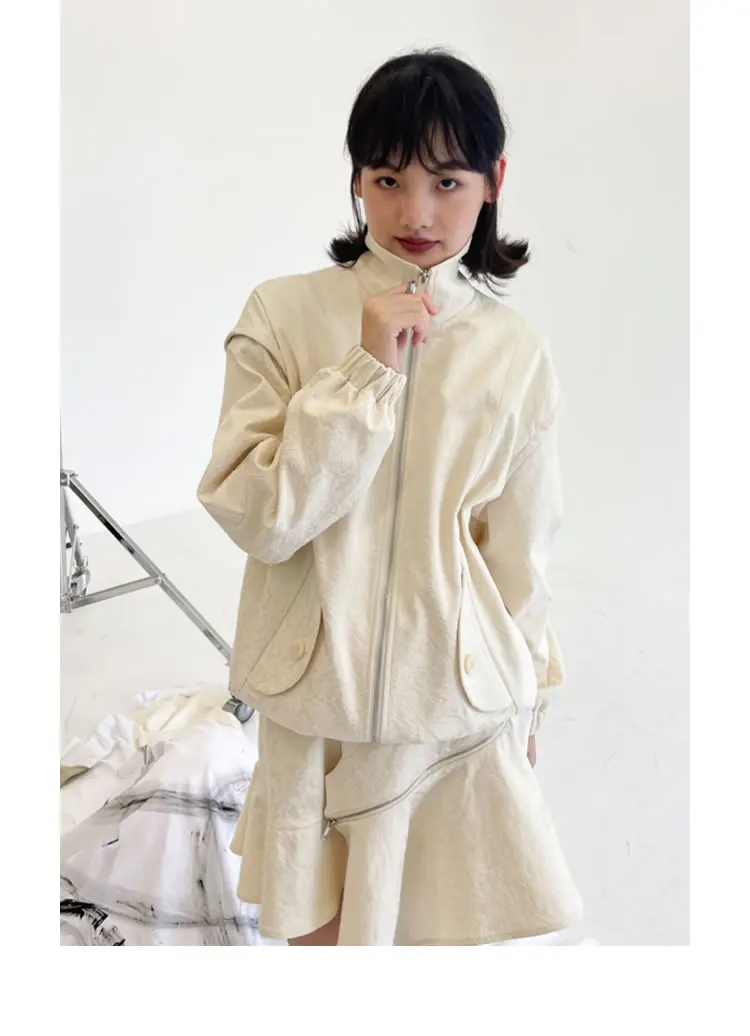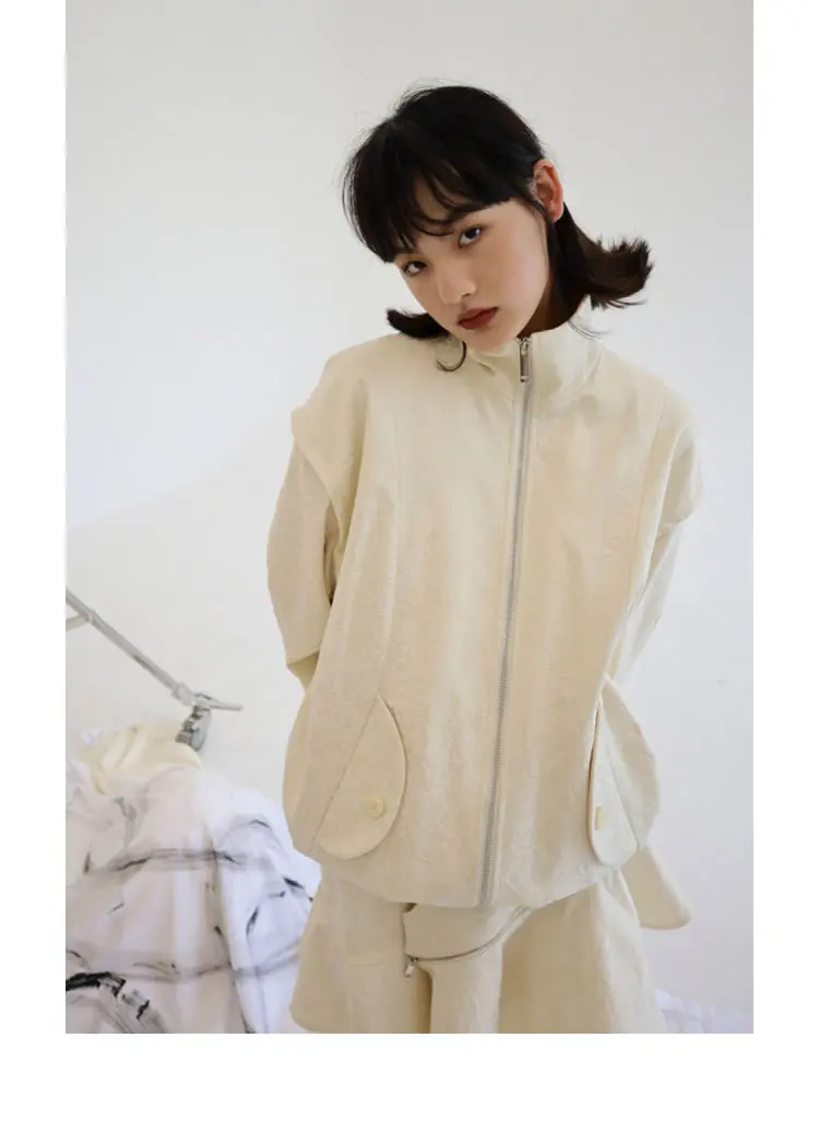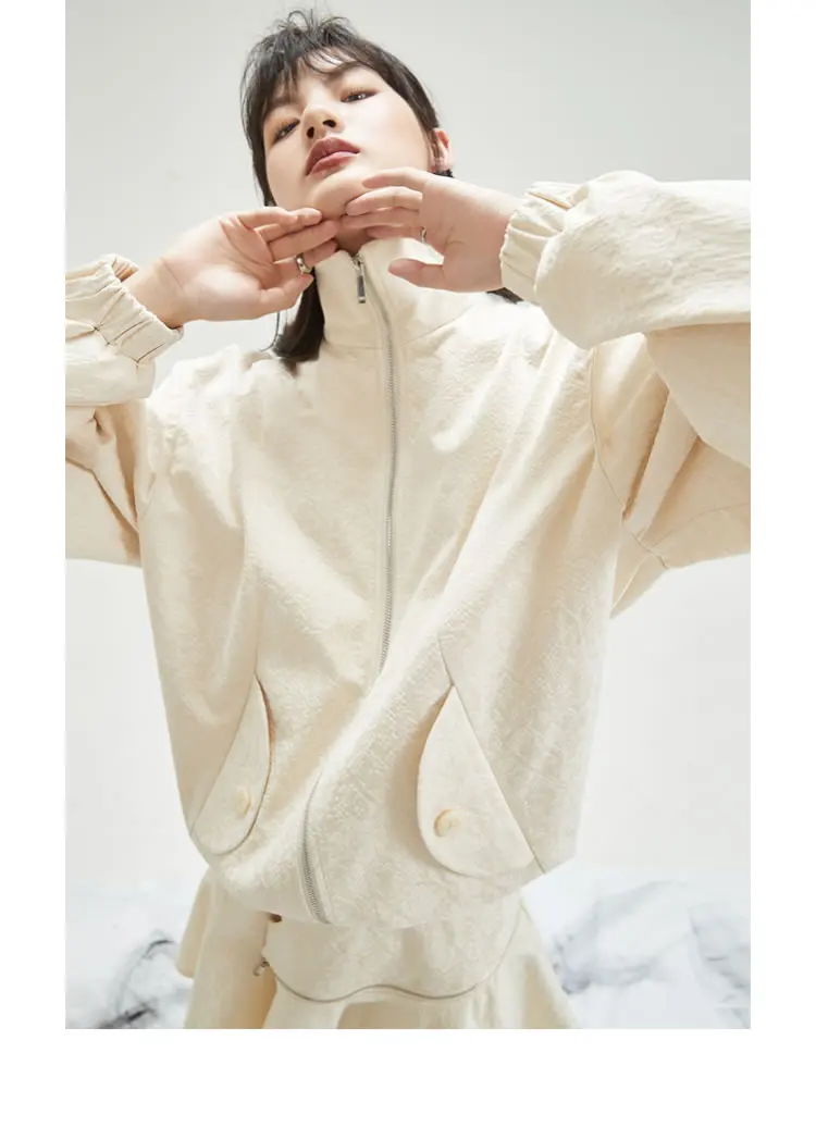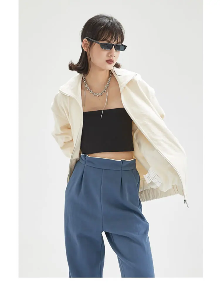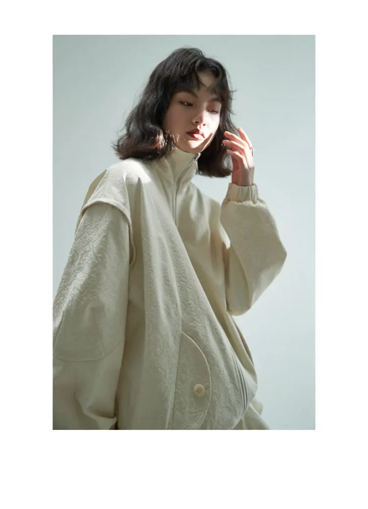 Женская куртка с карманами XITAO, однотонная, повседневная, стильная, осенняя, свободная, с длинными рукавами, GWJ0044, 2021