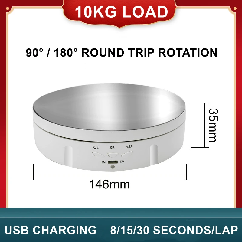 Спецификация (146 мм):Три скорости: 10/15/30 секундВес подшипника: 10 кгУглы поворота: 90 градусов круглый ход, 180 градусов круглый ход.Источник питания: мобильный Банк питания/USB зарядка/18650 литиевая батарея. (Не включая аккумулятор)Материал: АБС-пластикДиаметр: прибл. 14,6 см/5,75 дюймаВысота: прибл. 3,5 см/1.38inЦвет зеркала: черный, белыйКоличество: 1 комплектПримечание:Возможны отклонения в 0-1 см вследствие измерений вручную. Пожалуйста, убедитесь, что вы не возражаете, прежде чем сделать ставку.Из-за разницы между различными мониторами изображение может не отражать фактический цвет изделия. Спасибо!Посылка:1 x выставочный стенд1 х USB кабель