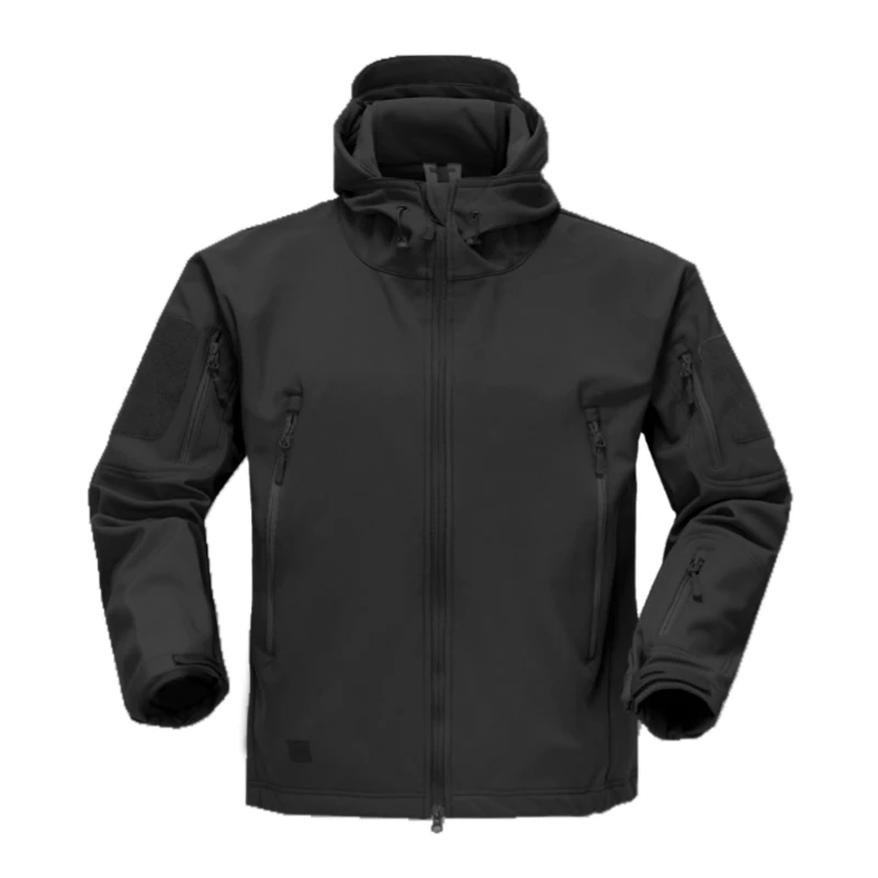 Куртка тактическая военная с капюшоном демисезонная на толстом флисе цвет черный Shark Skin Soft Shell black