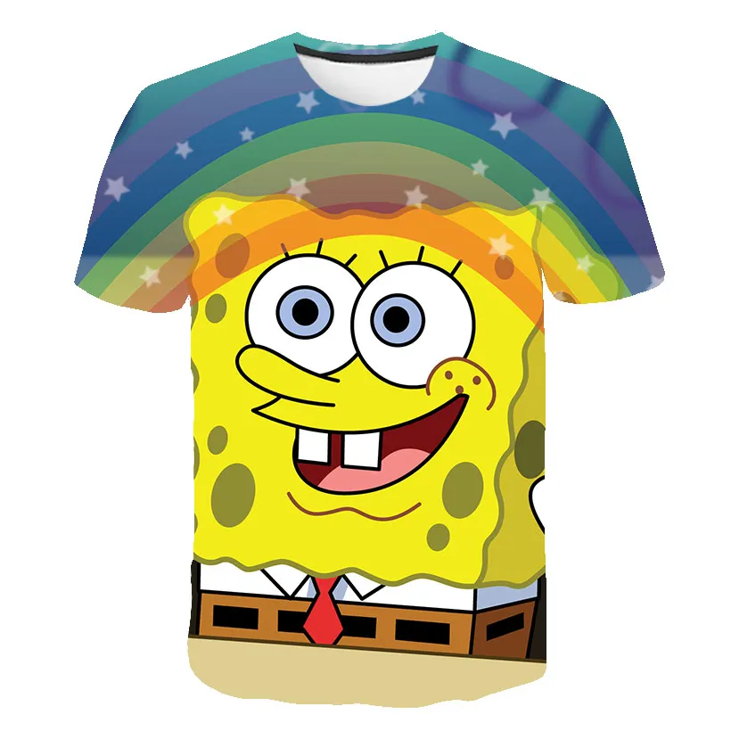 Детская одежда, футболка с губчатым Бобом, летняя дышащая детская одежда для мальчиков и девочек, крутые Топы с коротким рукавом и 3D рисунком