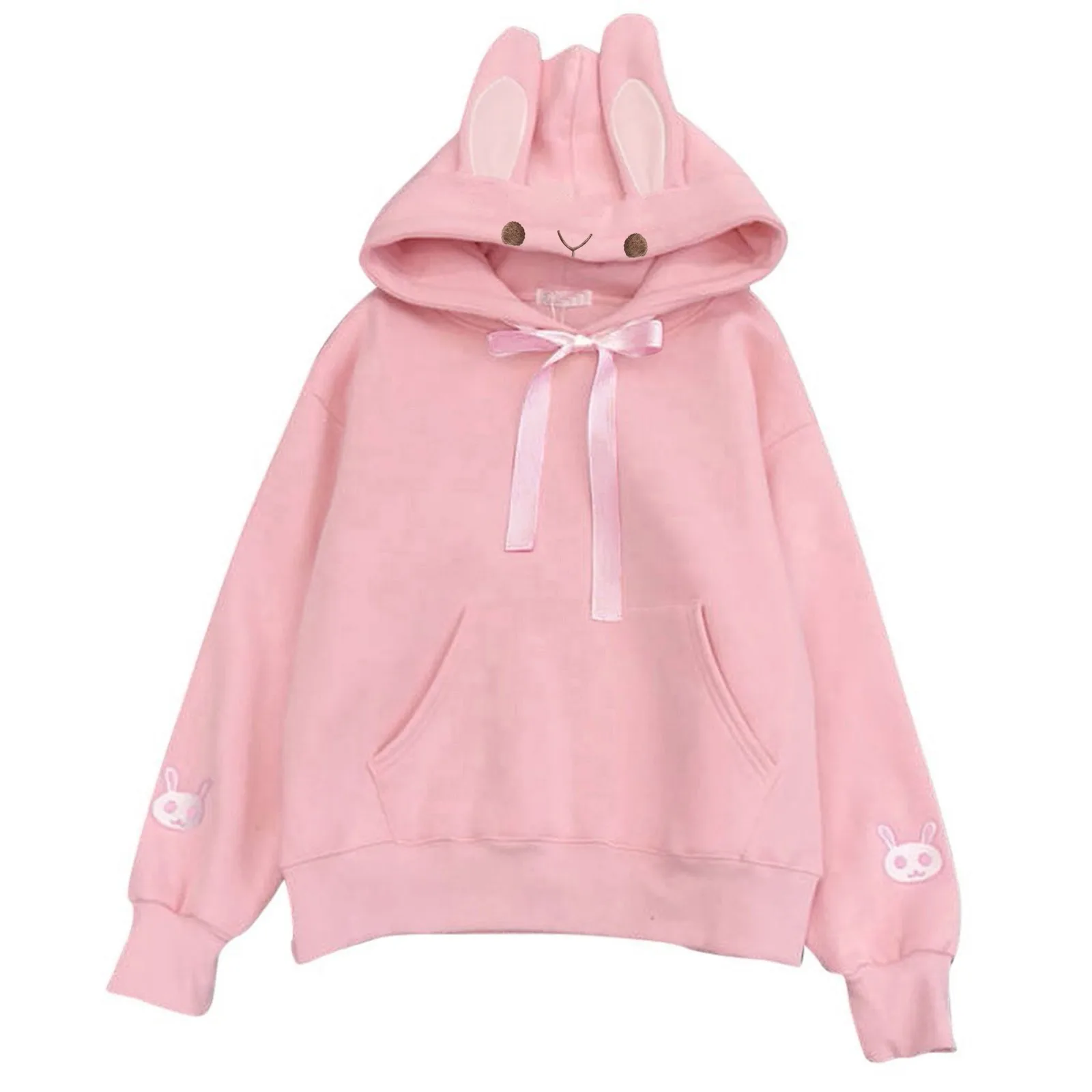 Милые розовые фотообои с ушками для девочек-подростков Harajuku аниме эстетические теплые толстовки 3d Кролик уши спортивный костюм толстовки