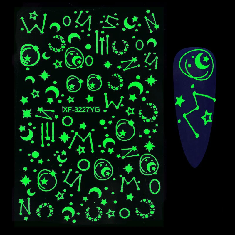 Светящиеся наклейки для дизайна ногтей свечение ногтей в темноте переводные наклейки луна бабочка Маникюр дизайн Ночник светильник наклейки