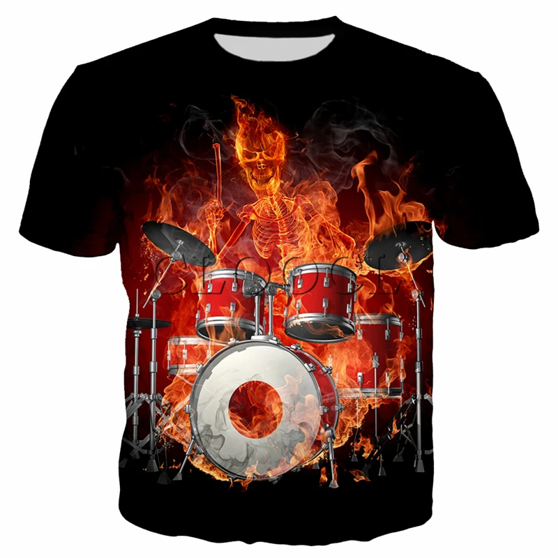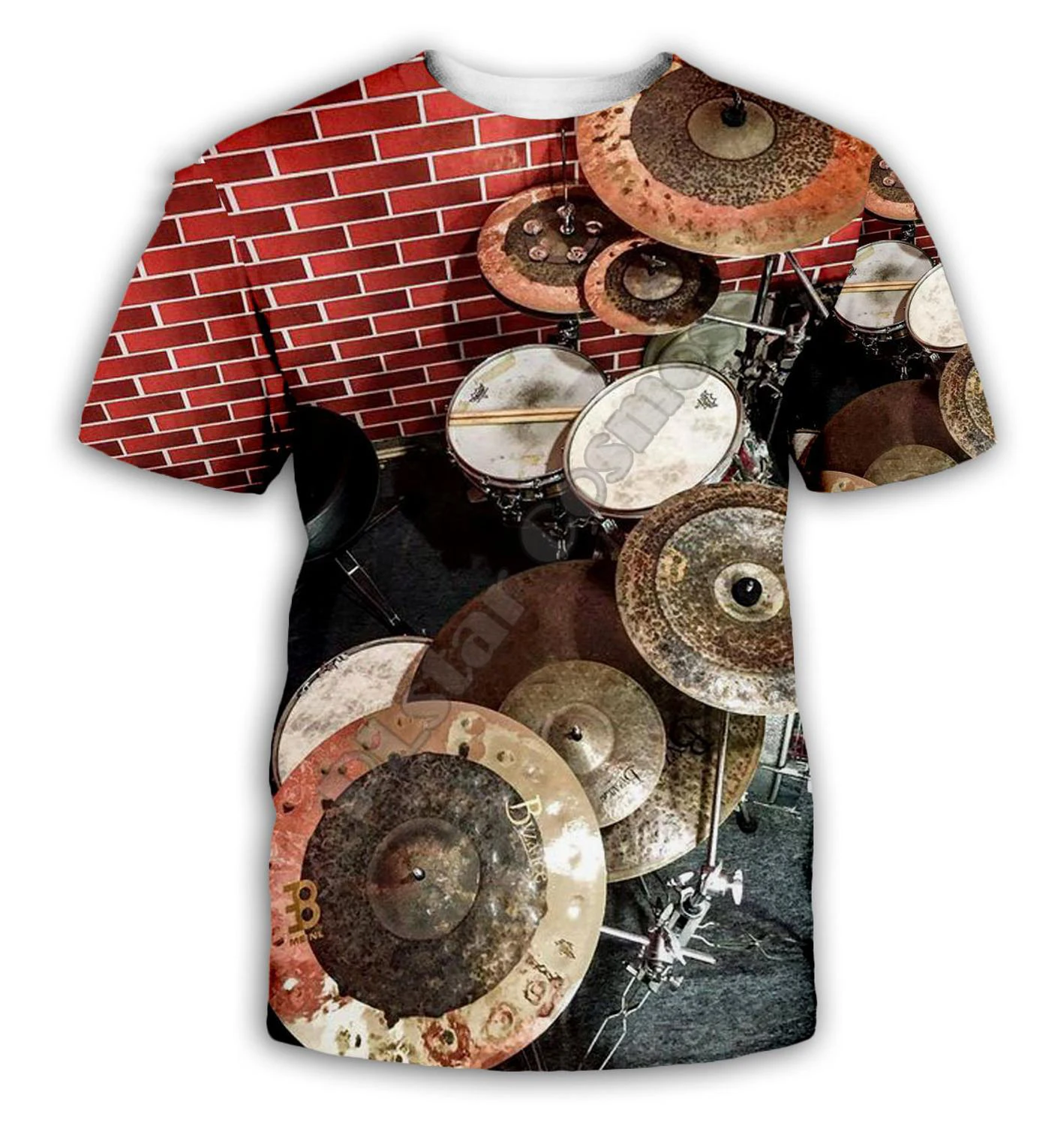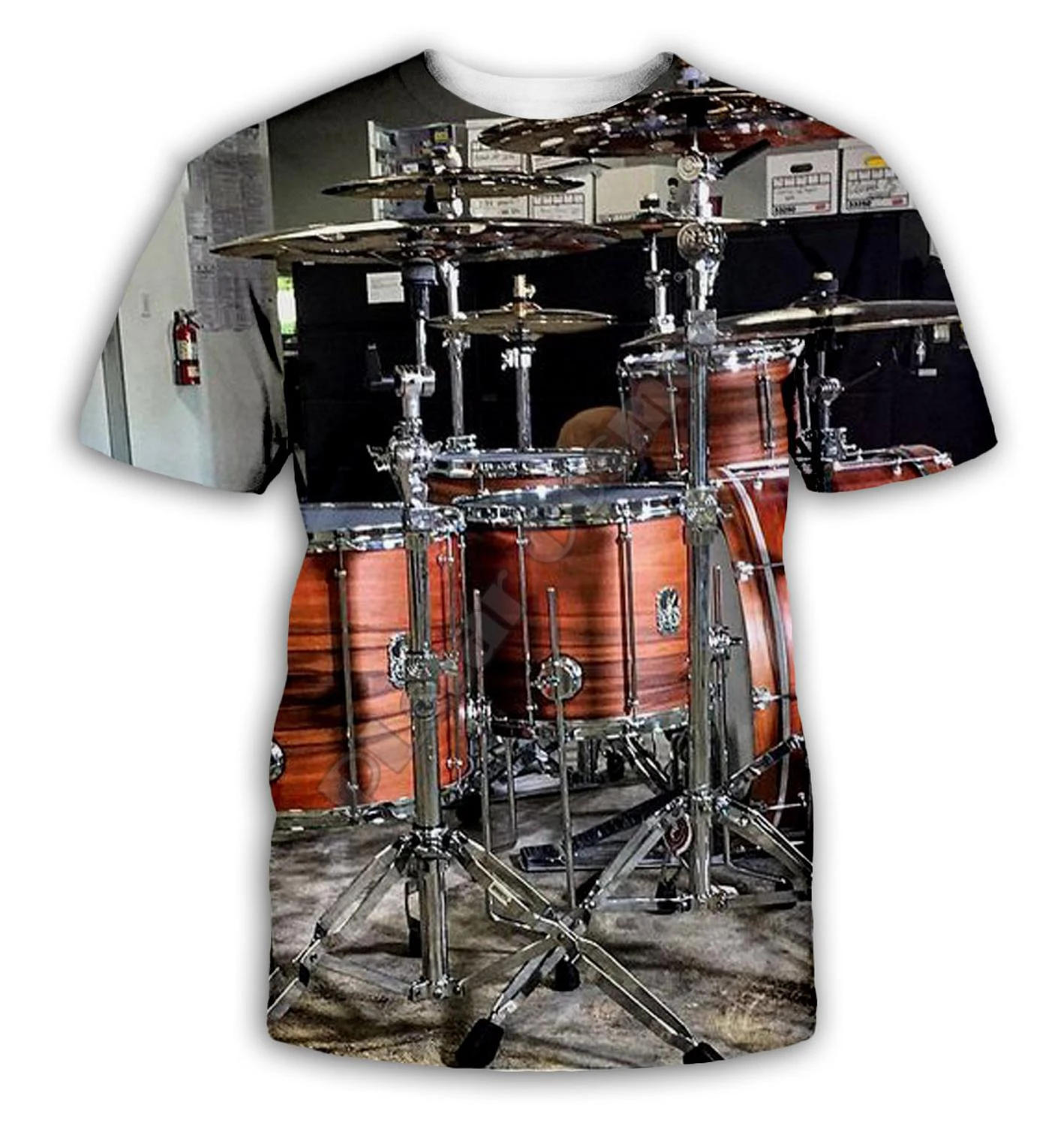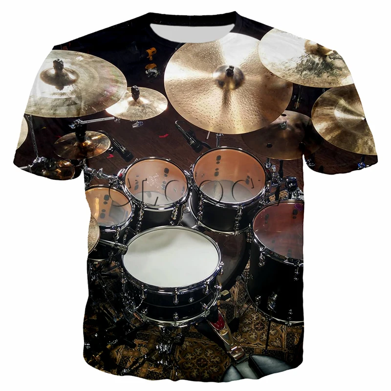 Мужская рубашка в стиле хип-хоп, с 3D-принтом музыкальных инструментов, с короткими рукавами