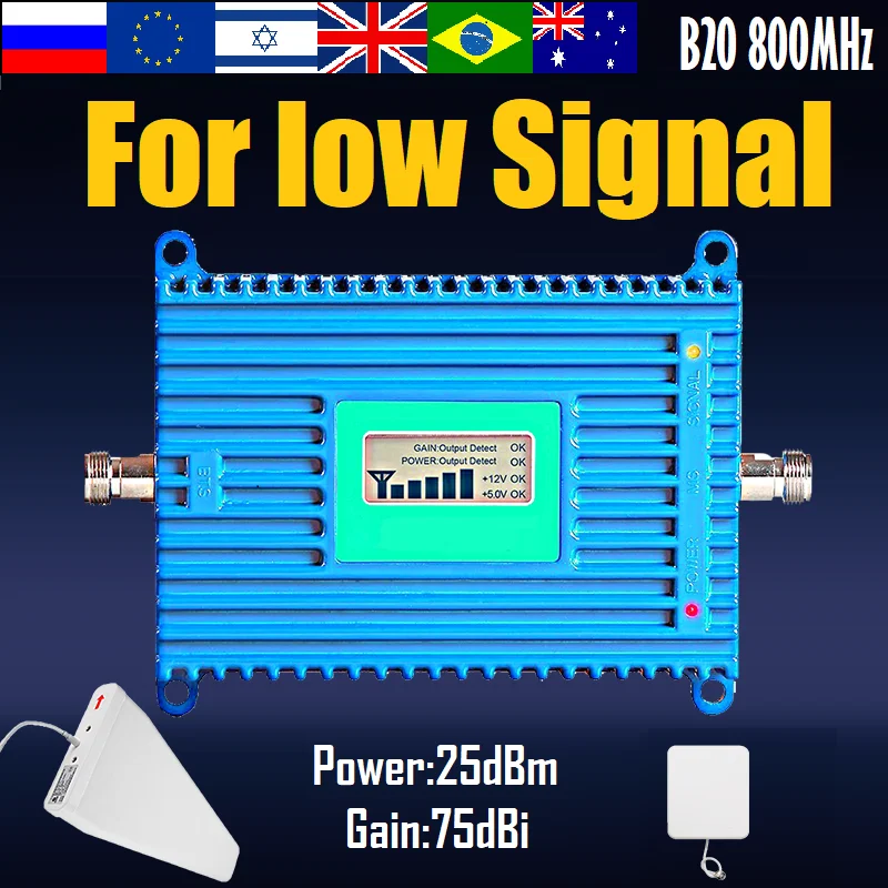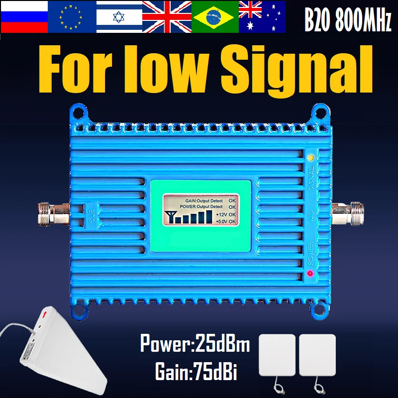 Усилитель сигнала диапазона 20, 800 МГц, 4G LTE, ретранслятор сотового телефона, 800 KW20L, Одобрено CE FCC, Европейское соединение, Испания, Франция, Италия