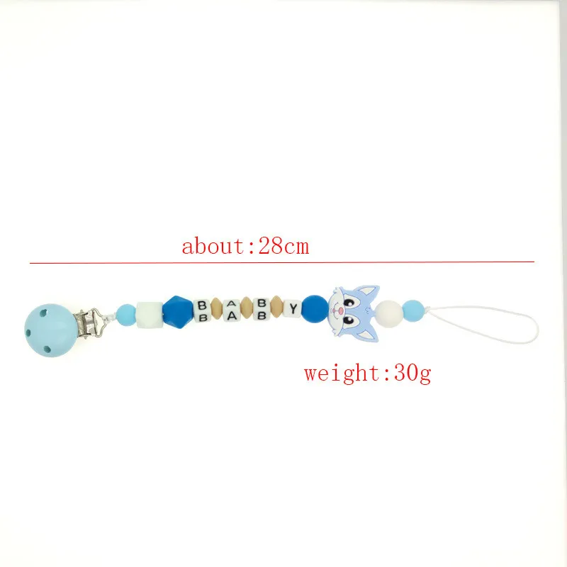 Настраиваемая цепочка для соски с именем ребенка, зажим для соски, вязаные бусины, силиконовая цепочка для кормления лисы, игрушки для прорезывателя