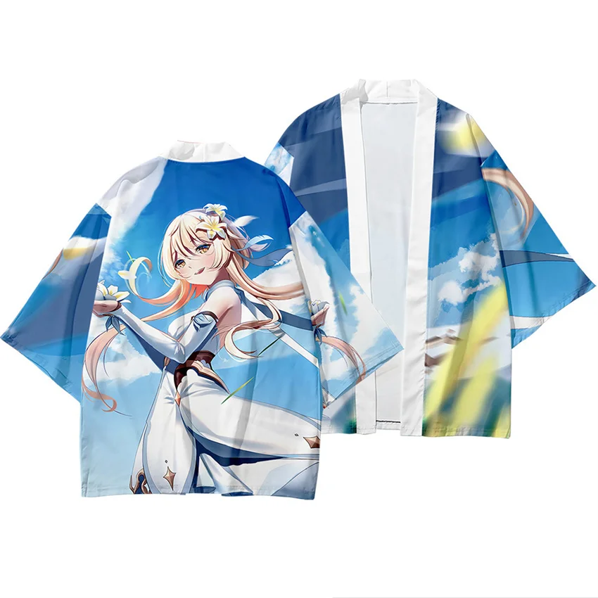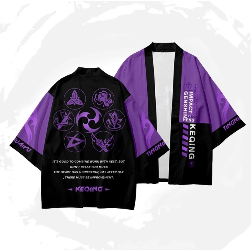 Кимоно для женщин и мужчин, шифоновое пальто, накидка для косплея Keqing, модный костюм, рубашка и шорты