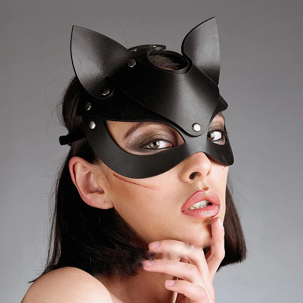 Женские сексуальные маски в виде кота, фетиш, эротические ремни, кожаные маски для БДСМ, регулируемый кожаный поводок, готические эротические костюмы, косплей