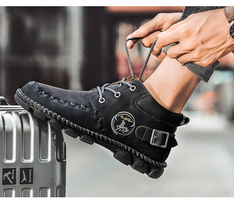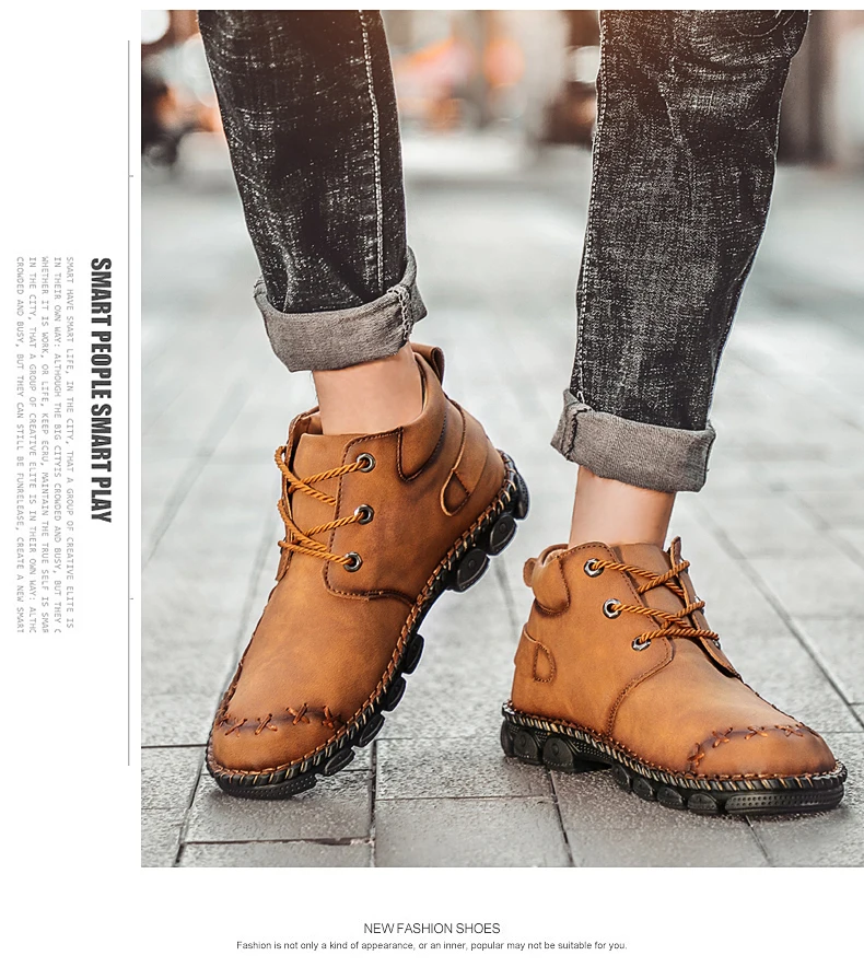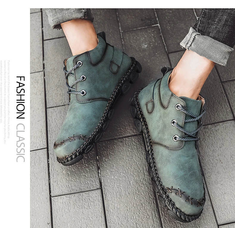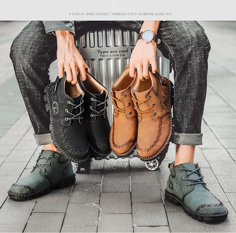 Модные мужские ботинки ручной работы мужские полусапоги осень-зима ...