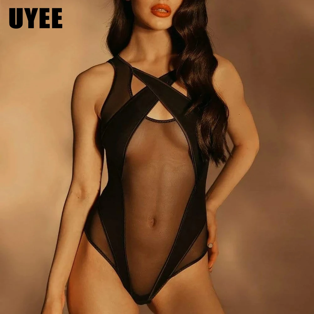 Женское прозрачное сексуальное боди без рукавов UYEE, топ с открыты...