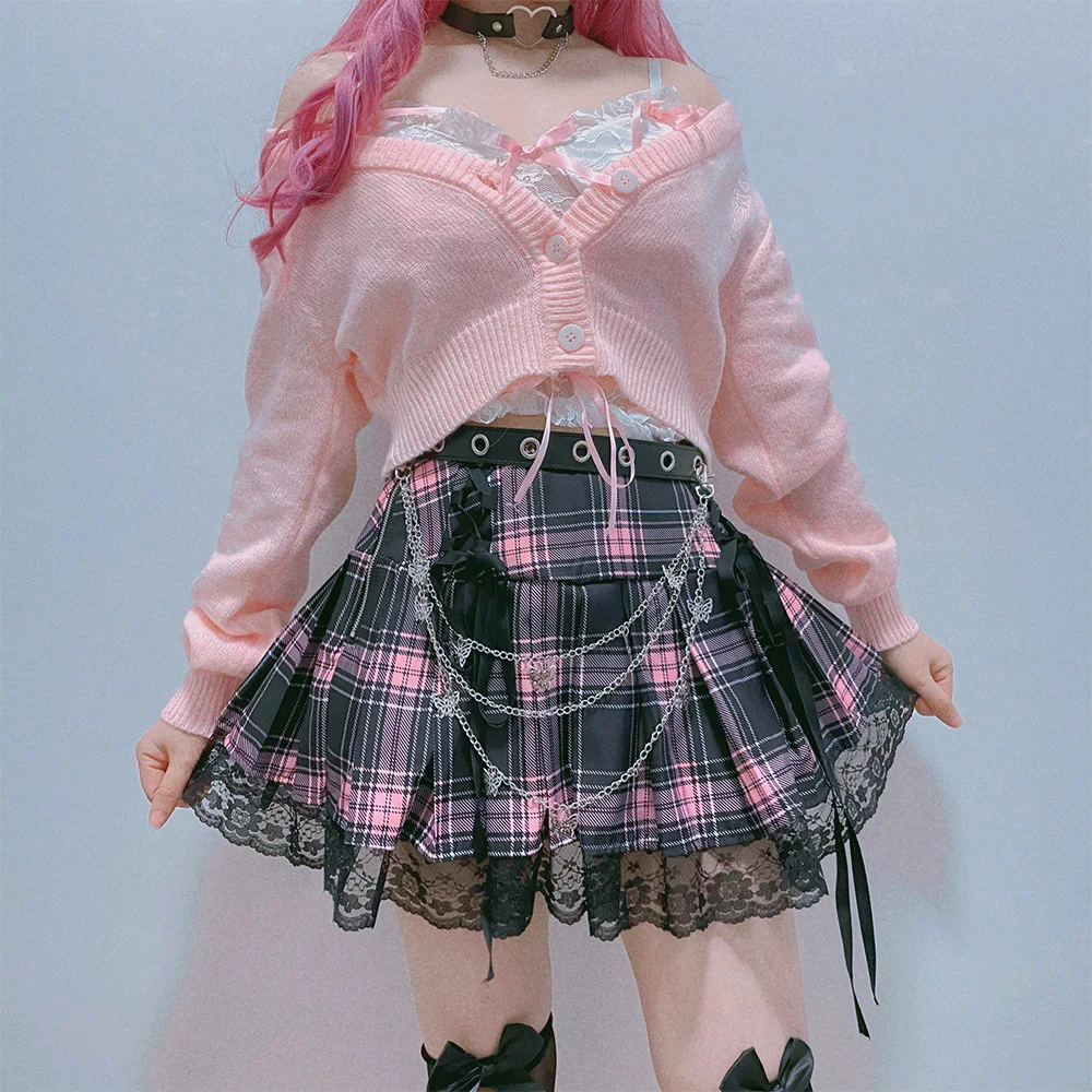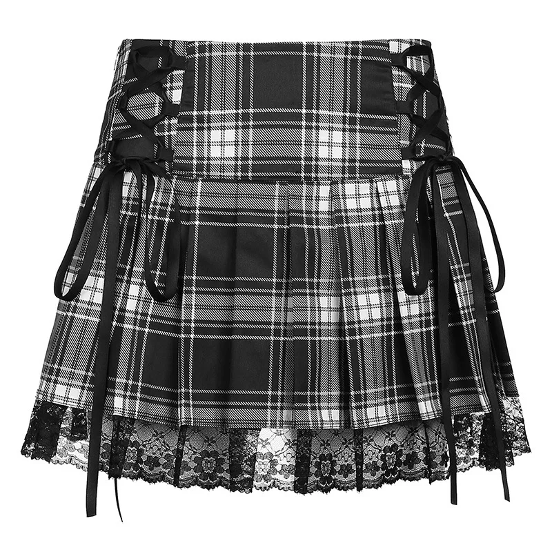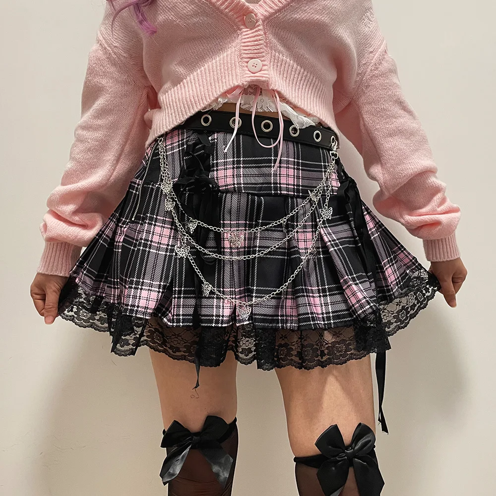 Мини гот с высокой талией, юбки эмо Y2K в стиле винтаж, кружевная клетчатая юбка в стиле пэчворк, Готическая темная плиссированная юбка с завязкой