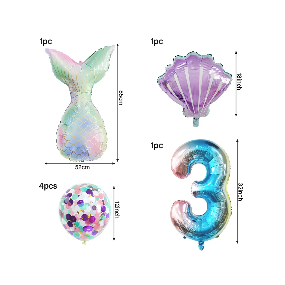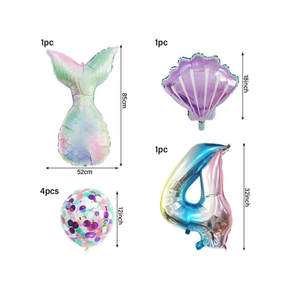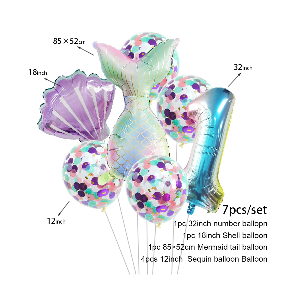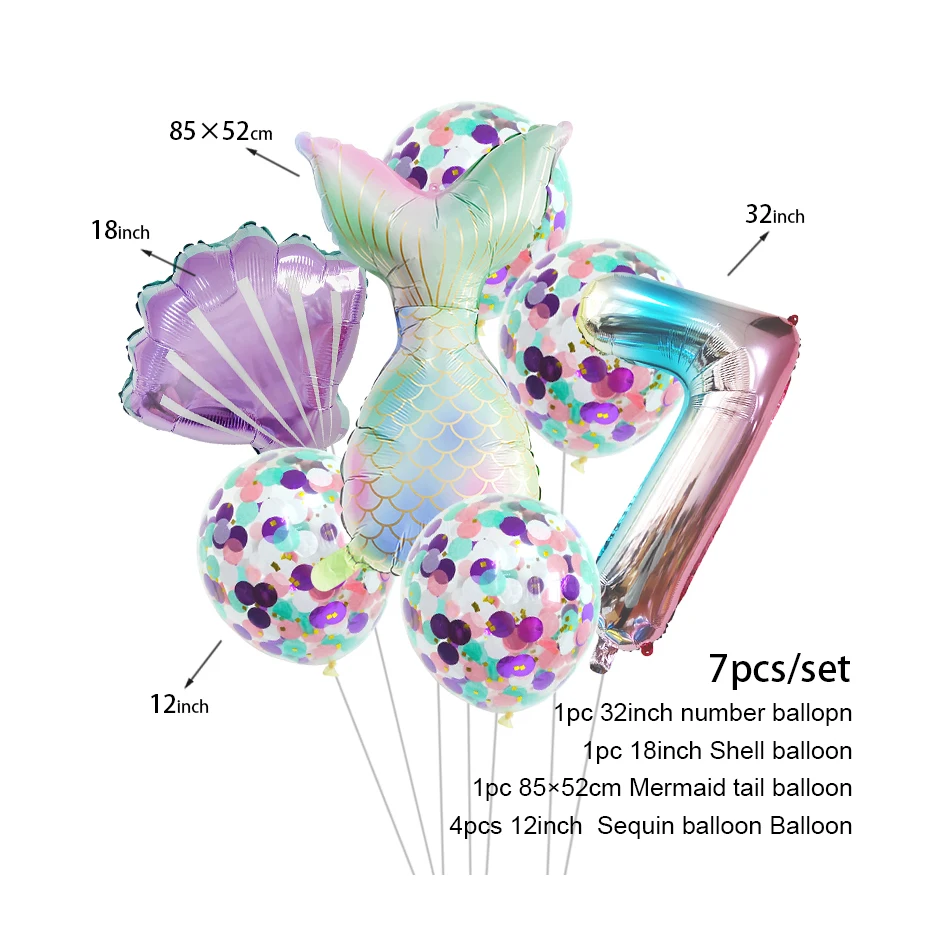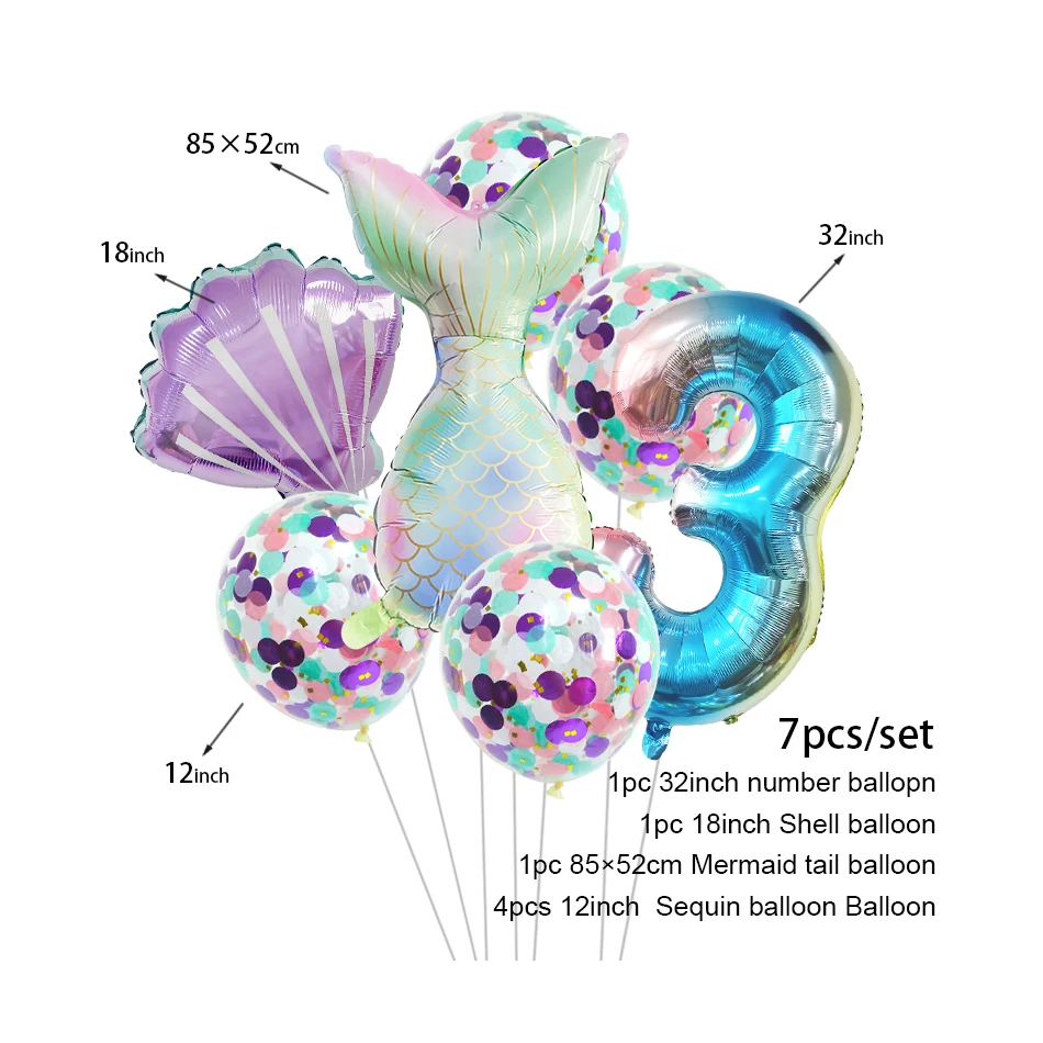 Воздушные шары в виде Русалочки, металлические, с блестками, с конфетти и цифрами
