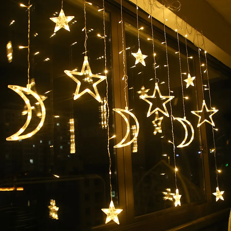 ИД Мубарак Декор светодиодный дома Луна Звезда светодиодная занавес...