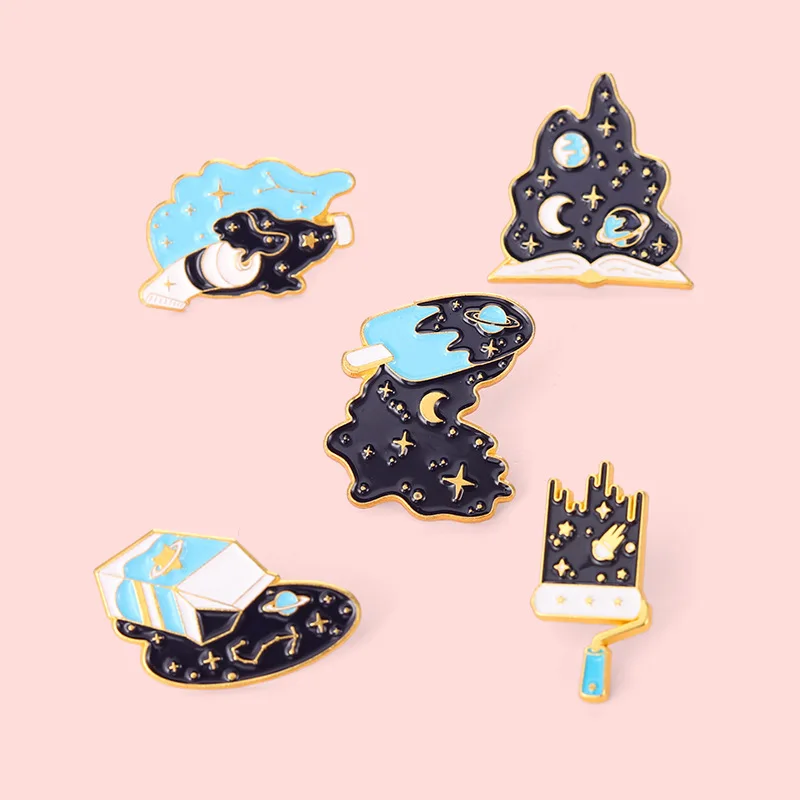 Эмалированные булавки Dark Interstellar Galaxy Звезды Луна на заказ...