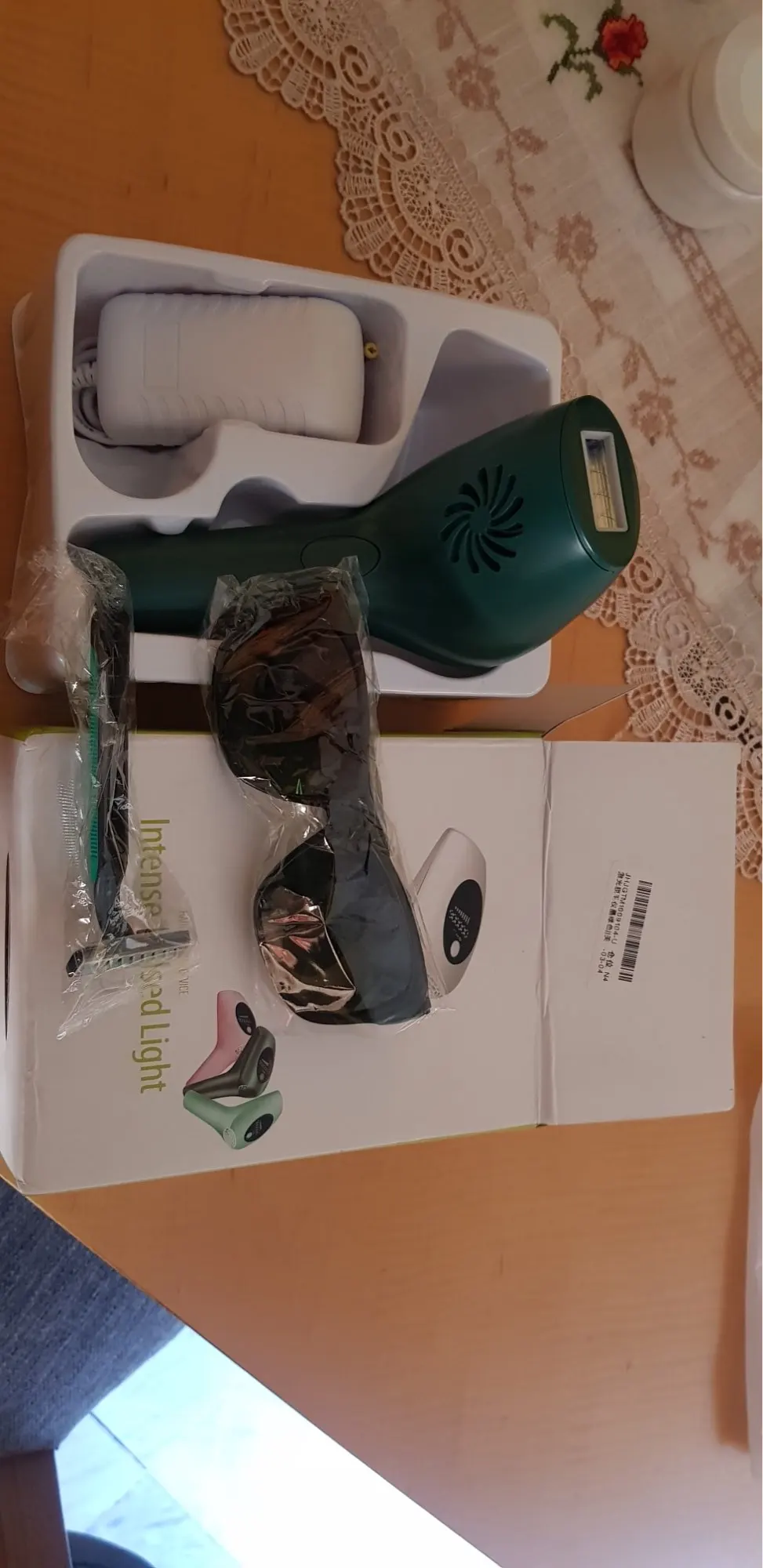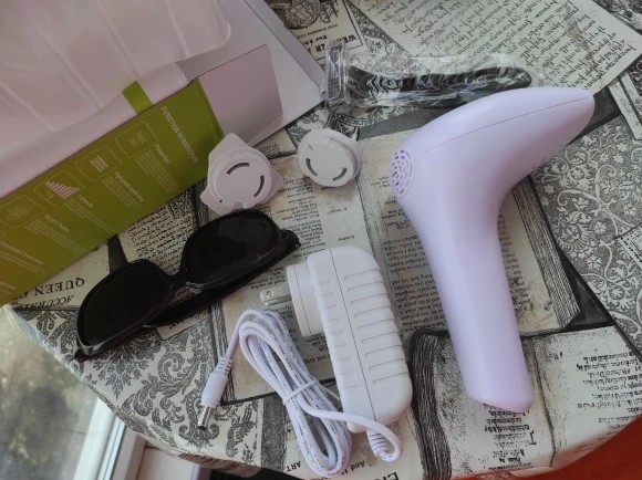после первого использования всё отлично. Горячо, волоски опаляются, в общем, похоже на то, что происходит в салоне. Использую на самой высокой мощности, у меня светлая кожа. Всего там восемь режимов, прилагается инструкция, для какой кожи и волос что подходит. Об эффекте говорить рано, но потом возможность отзыва закроется... попробую дополнить позже. Очки бесполезны - очень тёмные, в помещении в них плохо видно, проще закрыть глаза. Бритва тоже не знаю зачем. В комплекте три вида насадок для вилки, обычная европейская и ещё две странненьких. Кстати, сам прибор проводной, я почему-то была уверена, что в нём аккумулятор и шнур только для зарядки (он вынимается), подумала - сломан... потом дошло)) зелёный цвет красивый и соответствует фото. Пришёл быстро и в сборной посылке, так что, у кого низкие таможенные лимиты - аккуратно.