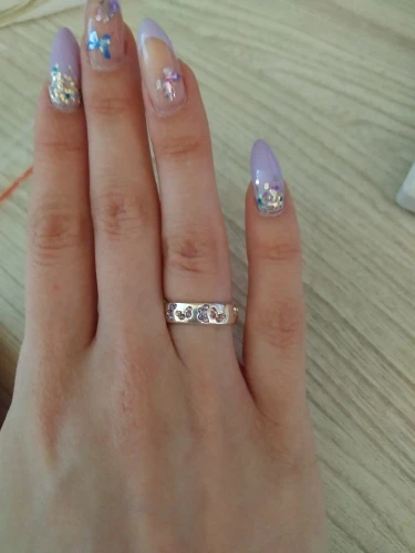 Это кольцо Очень изящное и красивое. Камни немного выделяются и имеют приятное ощущение, но нет. Блестит и блестит, как должно быть. Великолепное мастерство и забота входят в это кольцо. Мне нравится.