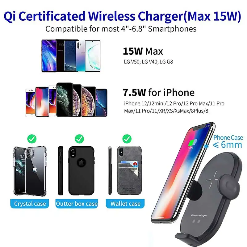 FeatureUniversal Qi 15W Wireless Car Charger Holder