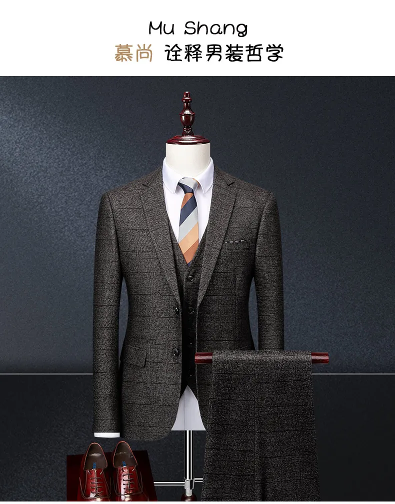 Новинка Осень-зима 2021, мужской фотокостюм, корейский вариант самосовершенствованной свадебной одежды, мужской костюм из трех предметов