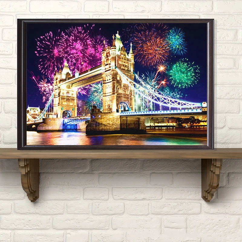 5D алмазная живопись сделай сам, большой мост, Ночной пейзаж, полноразмернаякруглая Алмазная вышивка, HD мозаика ручной работы, город, вышивка крестиком, Декор
