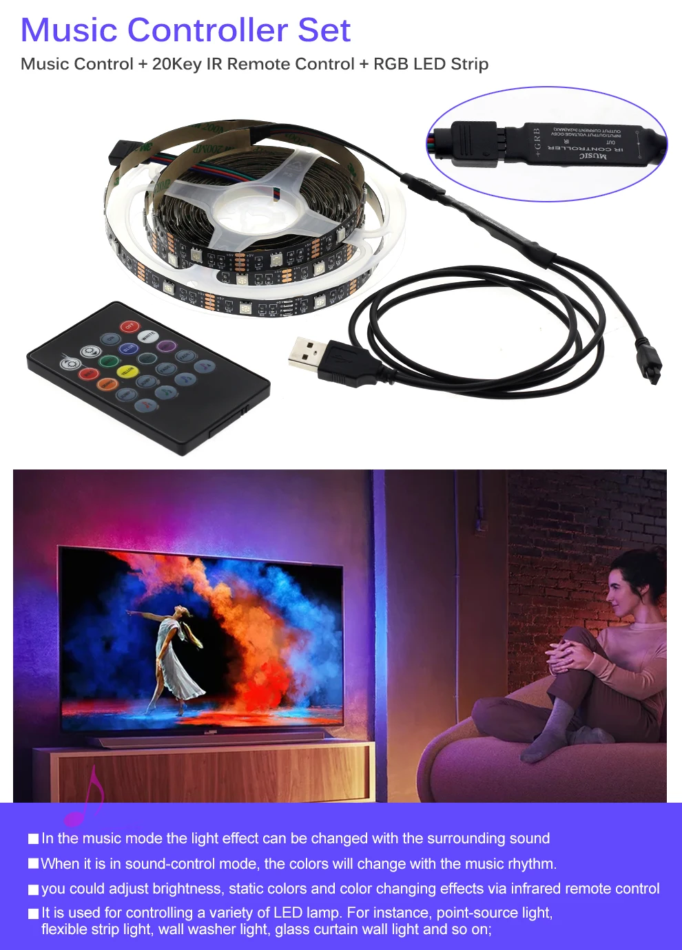 Bluetooth музыкальная Светодиодная лента с пультом дистанционного управления 50 см 1 м 2 м 3 м 4 м 5 м RGB 5050 гибкий светильник USB TV фоновый светильник ing