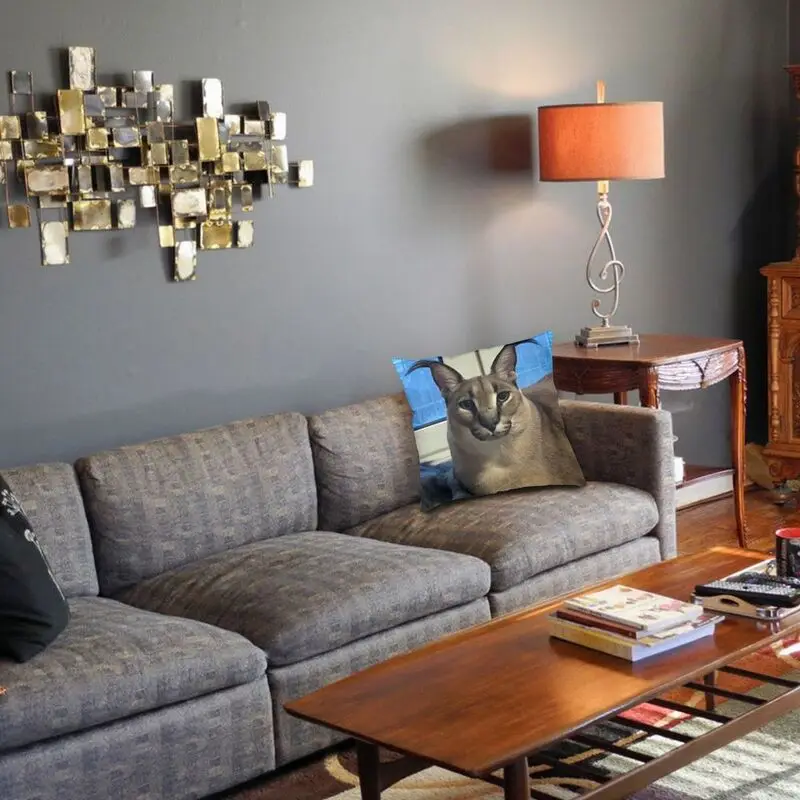 Большая забавная квадратная наволочка Floppa с принтом в виде кота