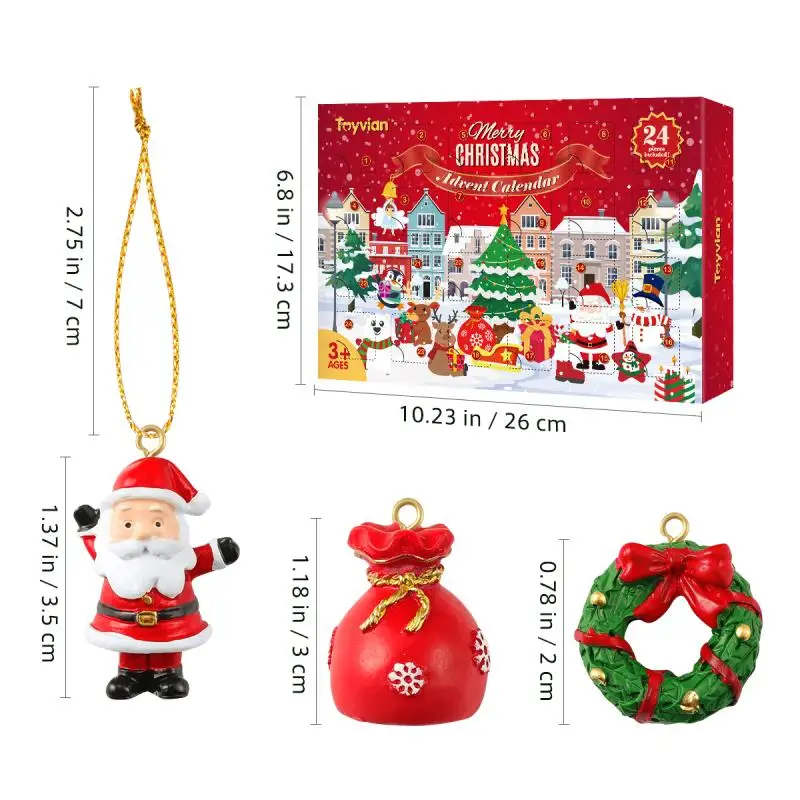 Календарь авантуара с 24 подвесными украшениями, яркий Рождественский календарь, новогодняя елка, подвесные украшения