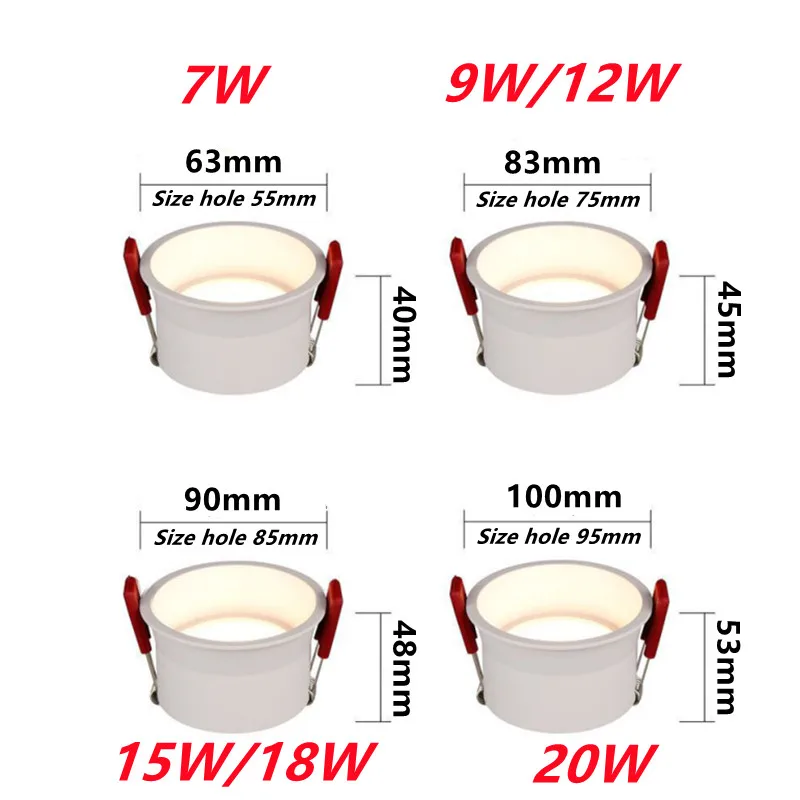 Приглушаемый антибликовый Светодиодный Светильник направленного света 7 Вт, 9 Вт, 12 Вт, 15 Вт, 18 Вт, 20 Вт