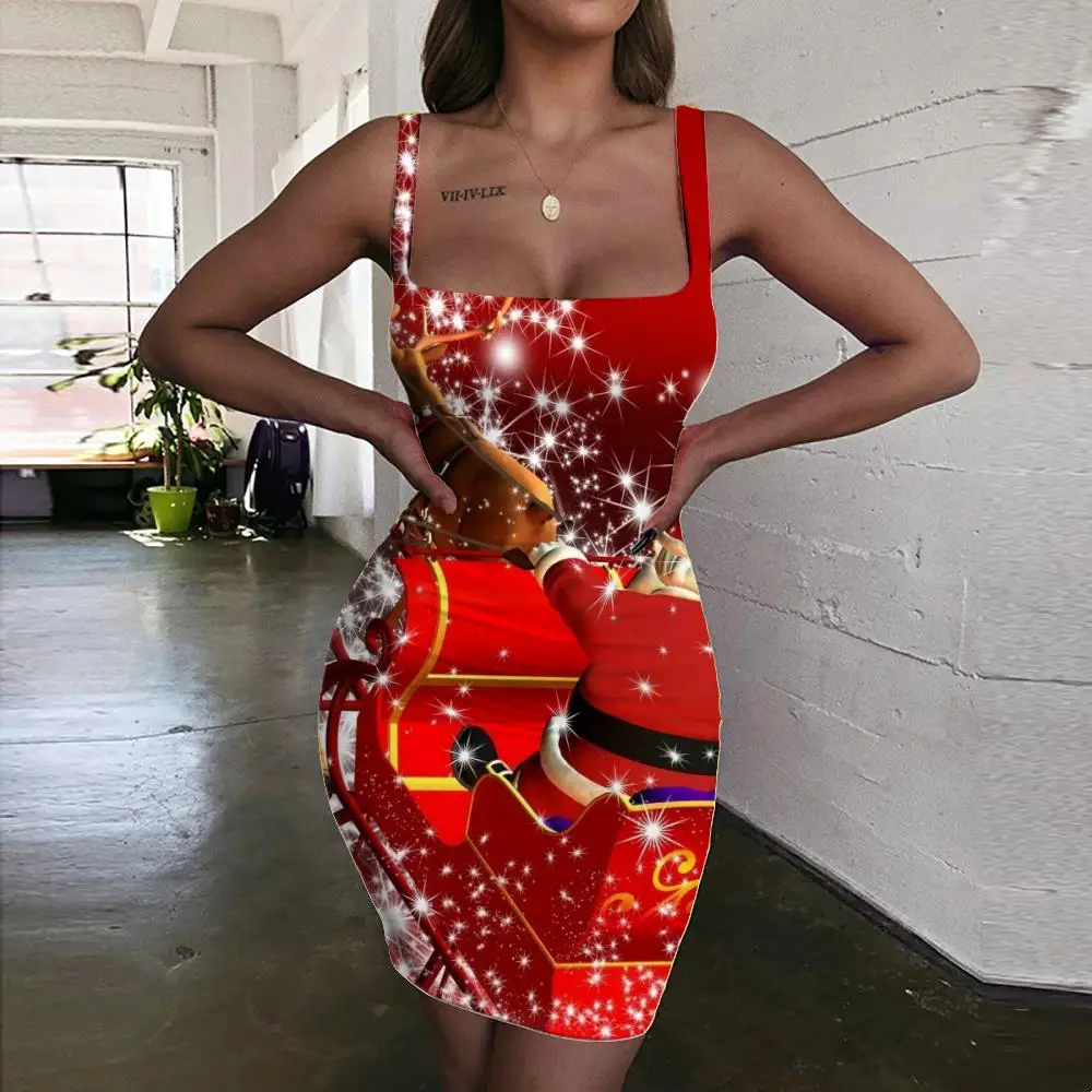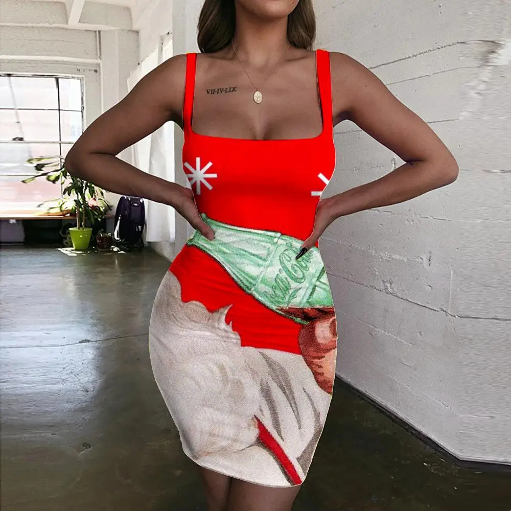 Женское облегающее платье KYKU, летнее пляжное платье с 3D-принтом Санта-Клауса