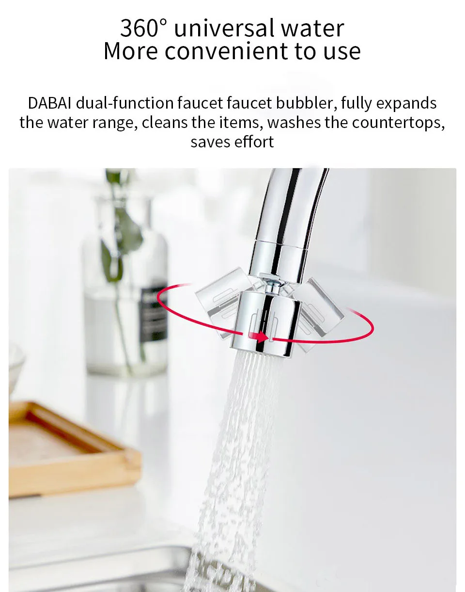 Аэратор для кухонного смесителя Xiaomi DABAI, поворотный насадка на кран, диффузор для воды, барботер, водосберегающий фильтр, защита от брызг