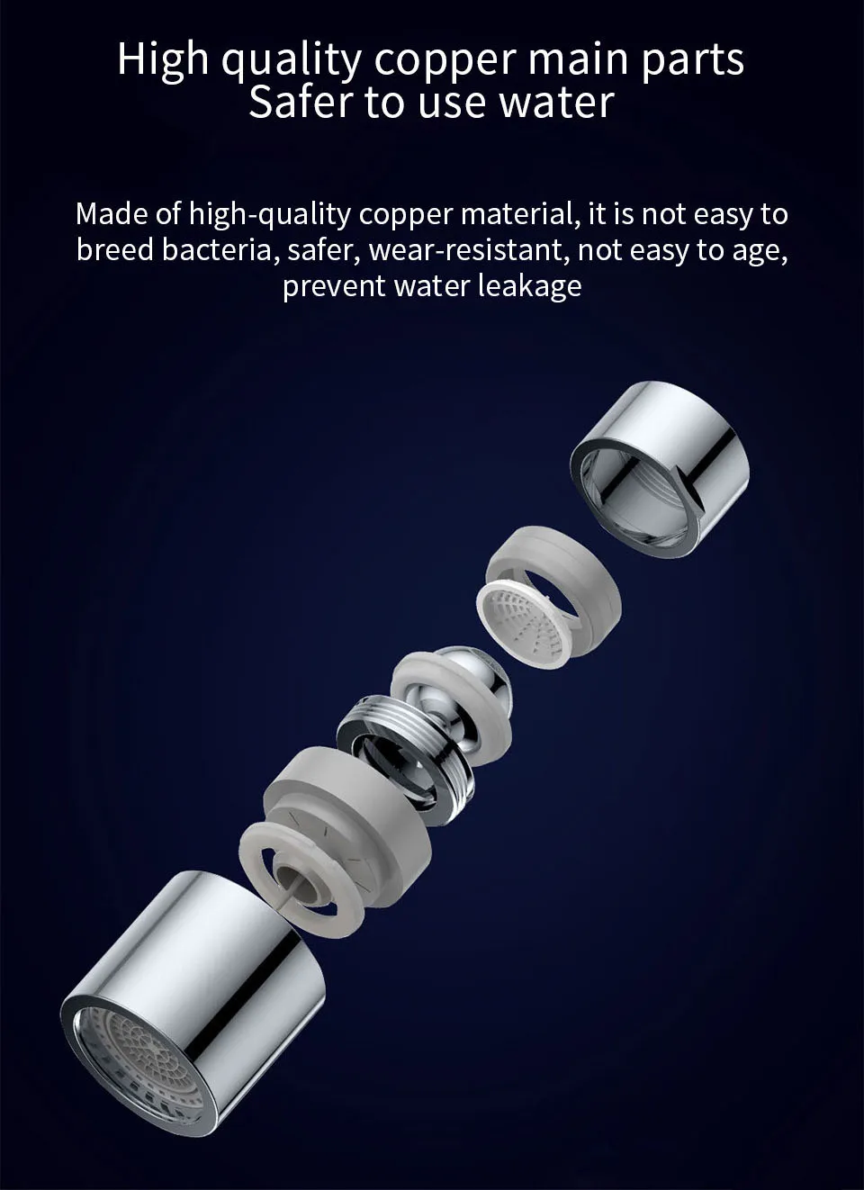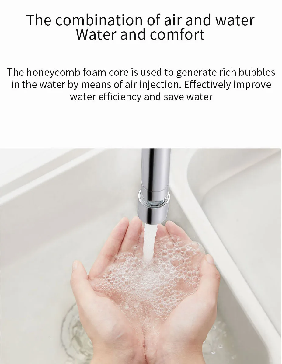 1. Предотвращает протекание воды, и воздух смешивается с водой хорошо, вода чувствует себя мягкой, улучшенный импульс воды, очистка более удобна.2. Тонкий, встроенный фильтр грязи захватывает песок и частицы грязи.3. Чтобы очистить, просто снимите фильтр и снимите краску под водой.4. Гуманизированный дизайн, прост в установке и использовании, нет необходимости заменять оригинальный кран, нет необходимости менять другие среды.5. Вращение на 360 градусов, вода может легко покрывать всю раковину, никогда не беспокойтесь о чистке раковины в холодную зиму.6. При условии высокой эффективности экономии воды, полностью отвечает водным требованиям для ежедневной ручной стирки, мытья посуды, мытья овощей и мытья фруктов.7. Все используют экологически чистые материалы, безвредные, без излучения, абсолютно безопасные и надежные.8. 17 национальных патентов, используйте больше спокойствия.