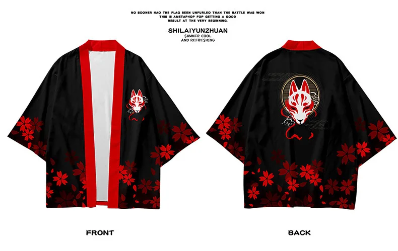 Кардиган-кимоно мужской с принтом Черной Лисы, юката, одежда самура...