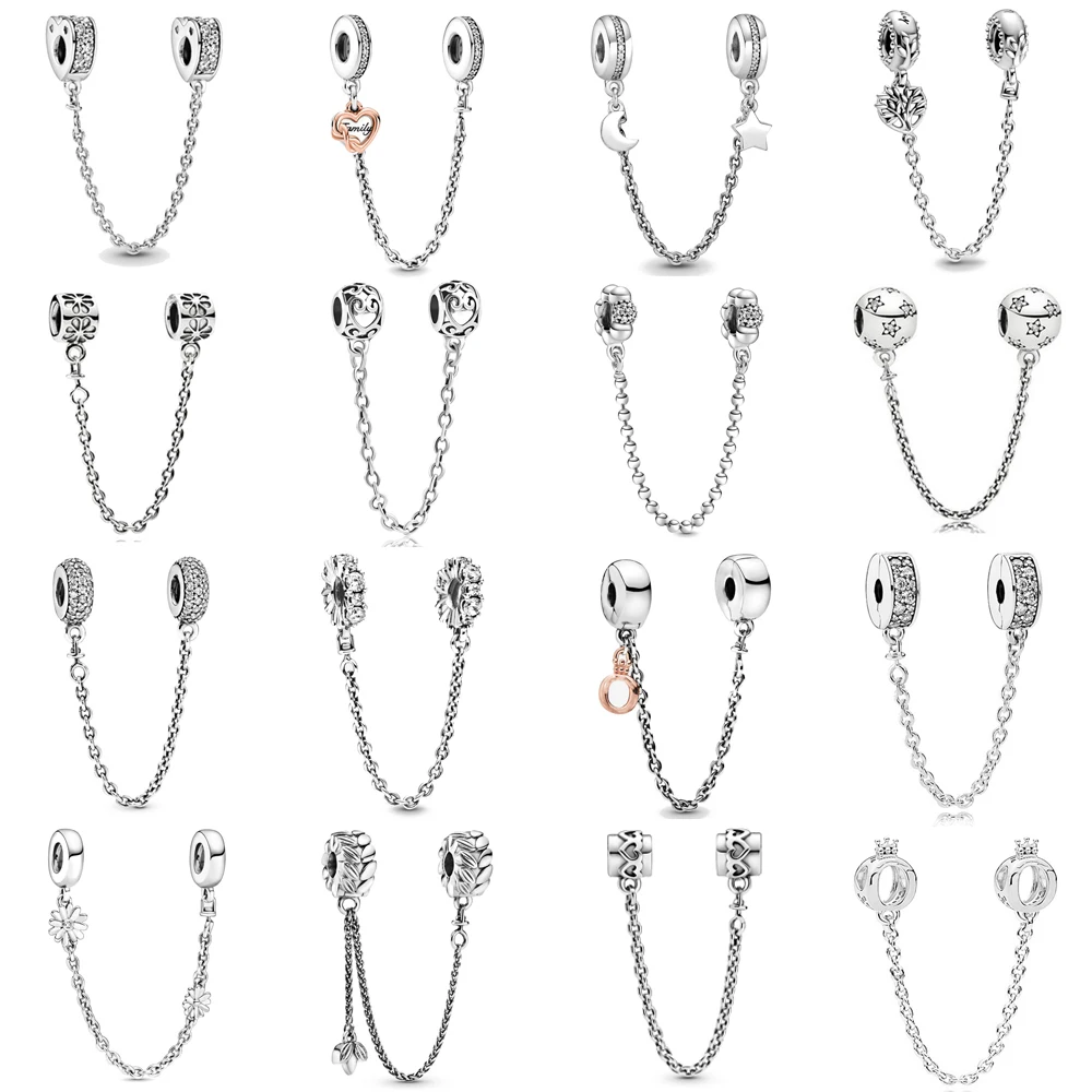 Горячая Распродажа, новинка, 925 пробы, серебряный, сверкающий цветок, безопасная цепочка, шарм, бисер, подходит для оригинального браслета Pandora, сделай сам, ювелирное изделие