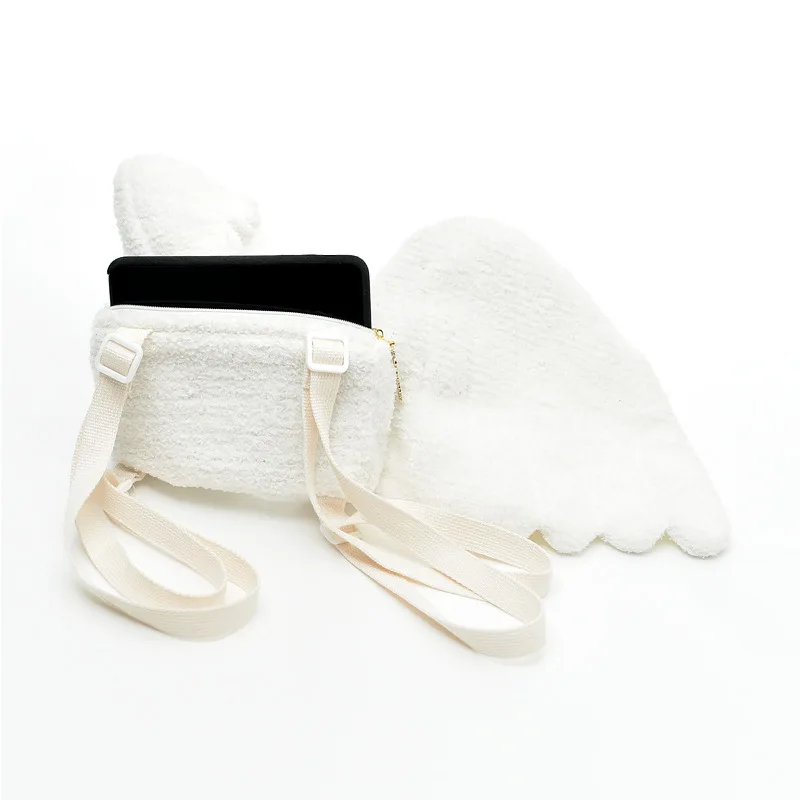 Концепция дизайна трехмерных крыльев Ангела создает прекрасный и подвижный внешний вид. Мягкая и гибкая текстура материала создает ощущение неудерживаемости. Рекомендуется хранить небольшие предметы, такие как мобильные телефоны/кошельки/зарядные устройства/ключи, которые практичны и милые, и очень популярны среди детей и взрослых!