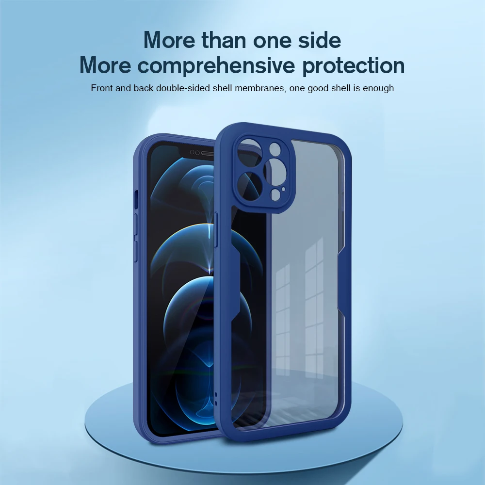 Чехол-книжка с полным покрытием экрана 360 + задняя крышка для Iphone 13 Mini 12 11 Pro 7 8 Plus Se 2020 X XR XS Max Защита камеры мягкий прозрачный чехол