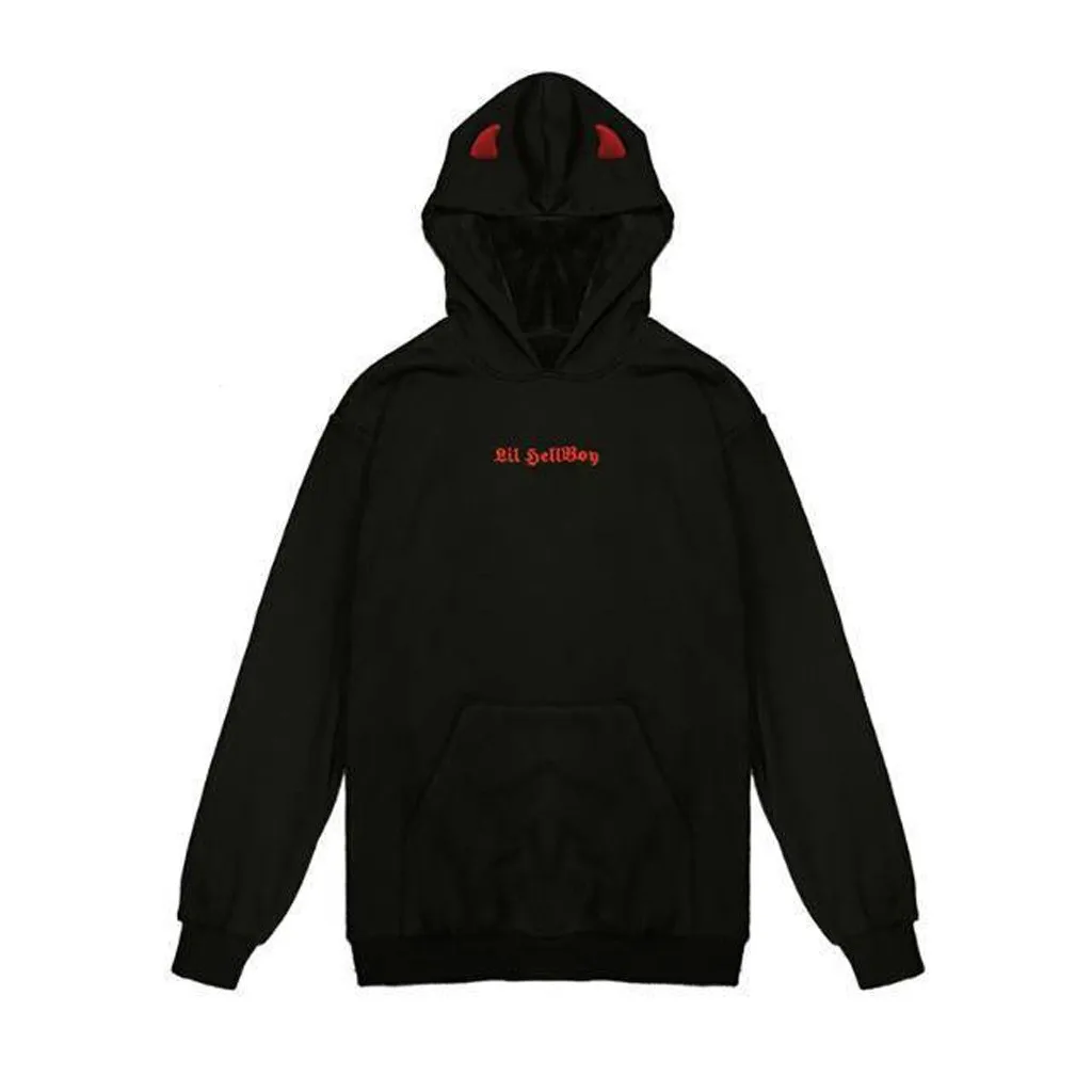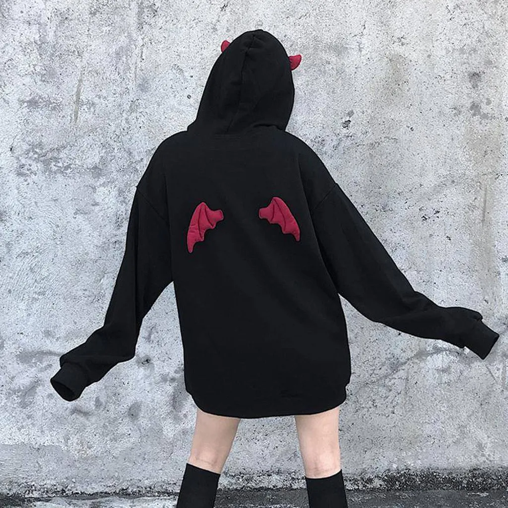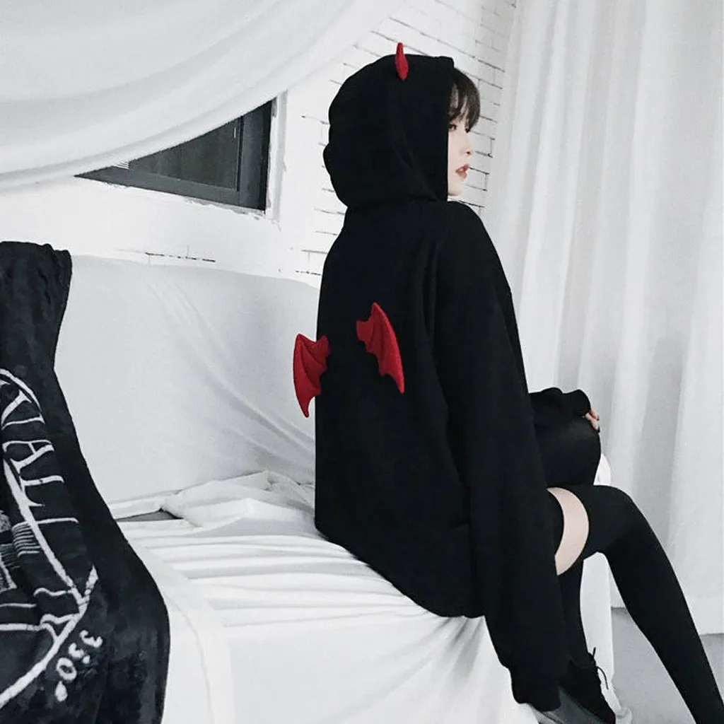 Худи женское оверсайз с 3d дьявольскими рожками, Повседневная Толстовка в стиле Харадзюку на Хэллоуин, худи в стиле K-POP, контрастный свитшот с карманами, топы, пуловеры
