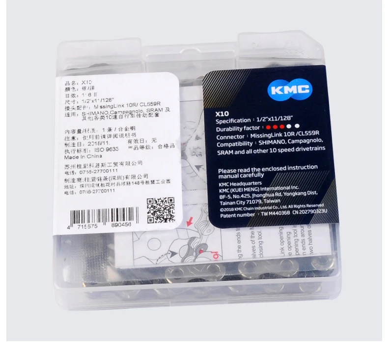 Велосипедные цепи KMC X10, X10, EPT, X10, EL, X10.93, 116L, 10, цепь для скоростного велосипеда, с оригинальной коробкой